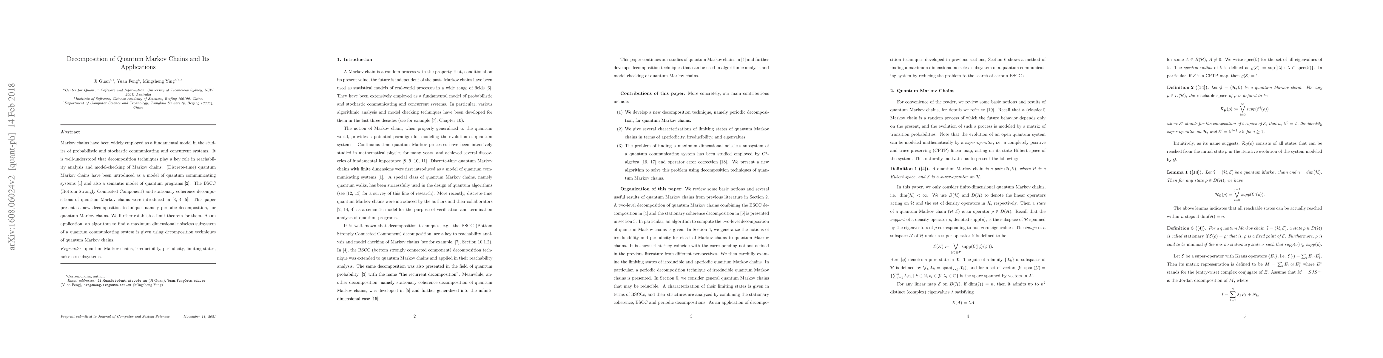 The paper develops a periodic decomposition technique for irreducible quantum Markov chains, combining it with BSCC and stationary coherence decompositions for a finer analysis of general quantum Markov chains.