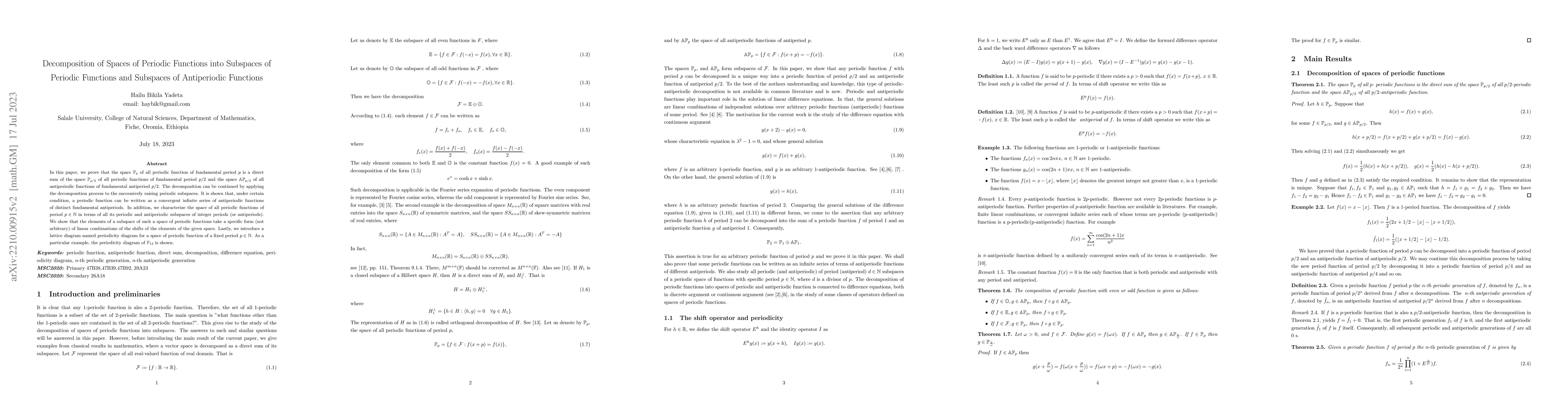 This paper decomposes the space of periodic functions into subspaces of periodic and antiperiodic functions, showing that periodic functions can be expressed as infinite series of antiperiodic functions. It also introduces a "periodicity diagram" to visualize these decompositions.
