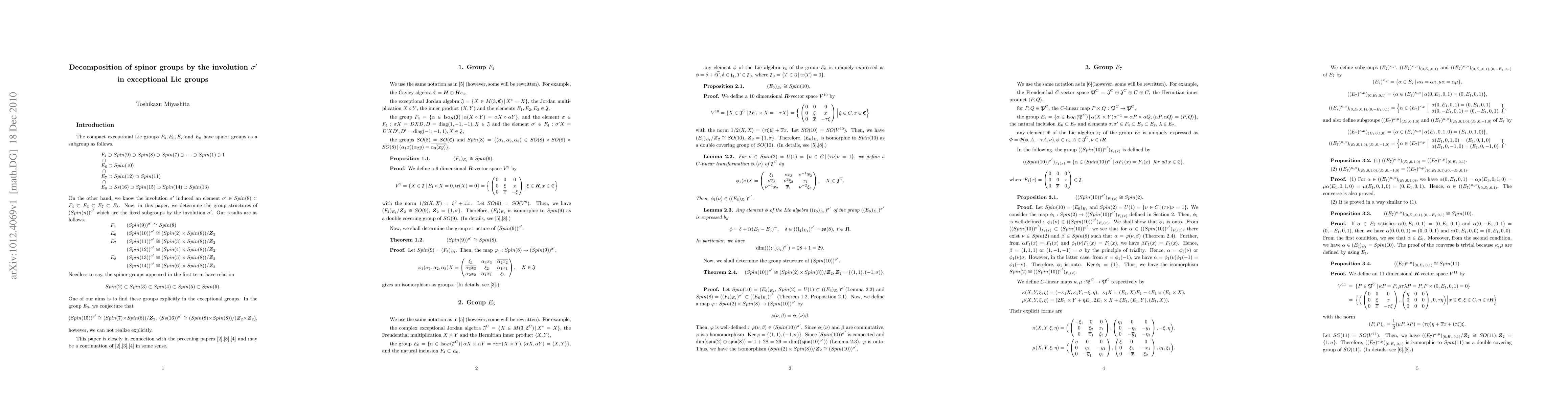 This paper investigates the decomposition of spinor groups within the exceptional Lie groups F4, E6, E7, and E8, focusing on the fixed subgroups under the involution σ'. It determines the group structures of (Spin(n))σ' for various n, revealing the intricate subgroup relationships within these compact exceptional Lie groups.