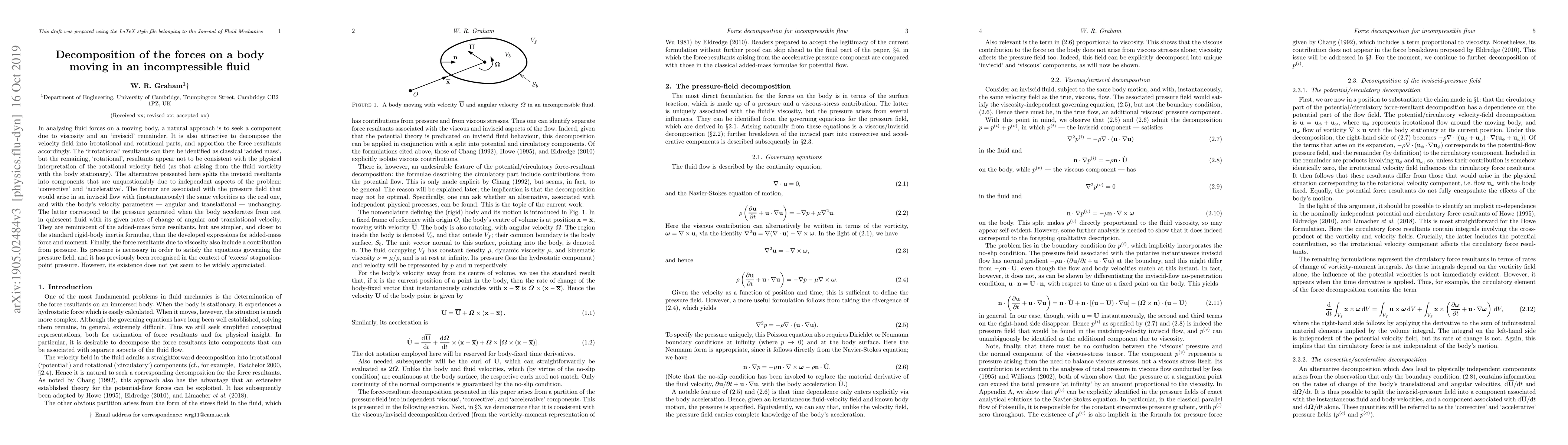 Researchers decompose fluid forces on a moving body into rotational, convective, and accelerative components, providing new insights into the physical interpretation of these forces.