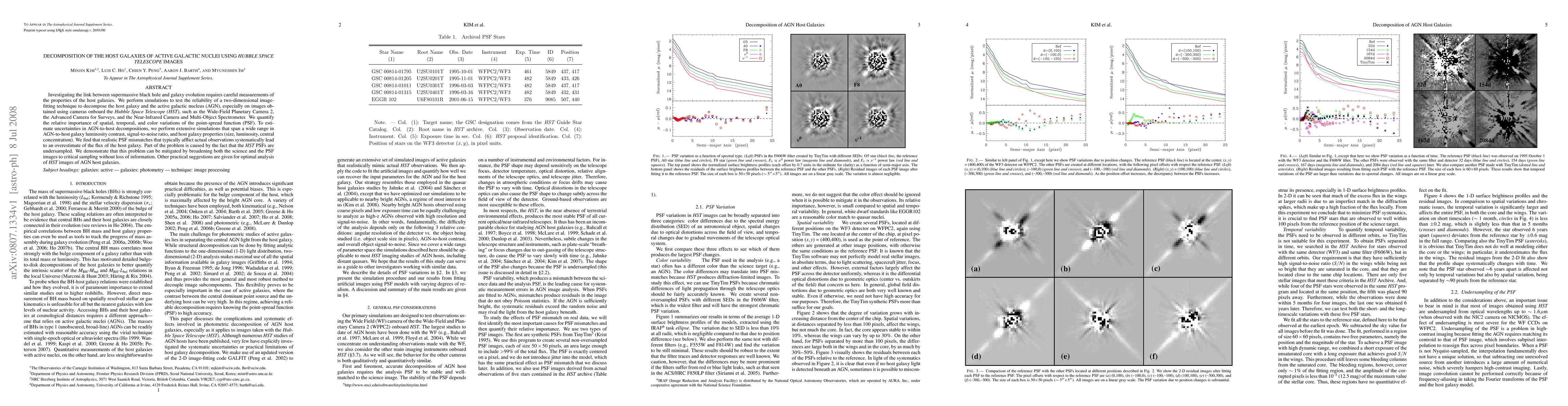 This paper investigates the decomposition of host galaxies of active galactic nuclei (AGN) using Hubble Space Telescope (HST) images, focusing on the reliability of image-fitting techniques. The study finds that PSF mismatches often lead to overestimation of host galaxy flux, but this can be mitigated by broadening images to critical sampling.