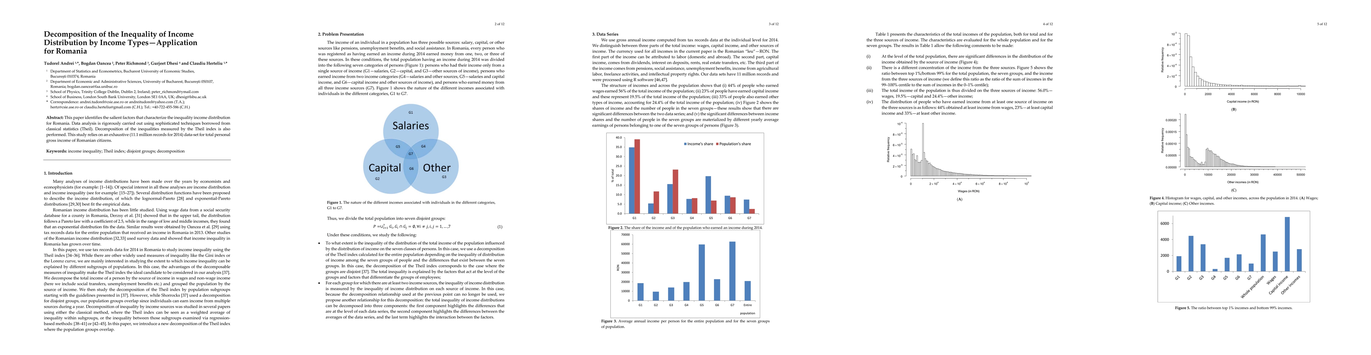 This paper analyzes Romania's income distribution inequality using Theil index decomposition, identifying key factors through an extensive dataset of 11.1 million records from 2014. Sophisticated statistical techniques are applied to rigorously break down the inequality by income types.