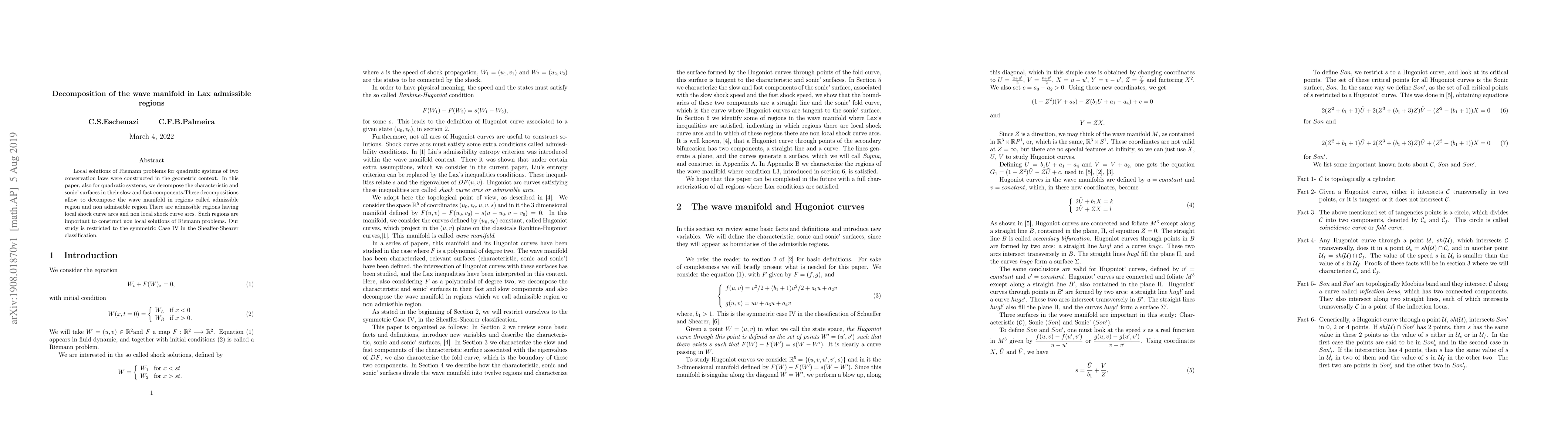 Researchers decompose wave manifolds into slow and fast components for quadratic systems of two conservation laws, identifying admissible regions with local shock curves and implications for constructing non-local solutions to Riemann problems.