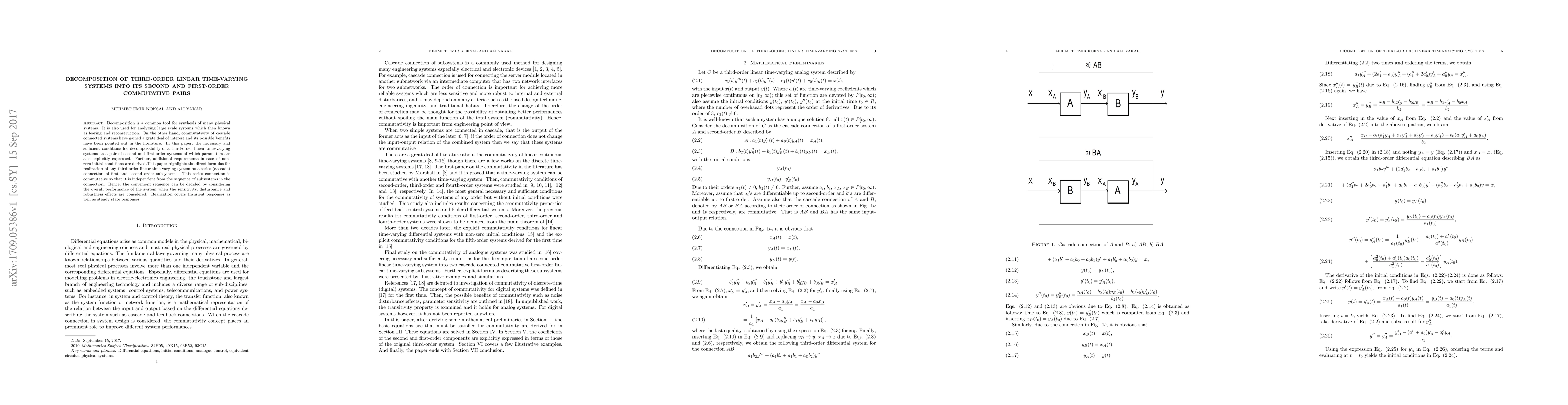 A research paper provides a method for decomposing a third-order linear time-varying system into a commutative pair of first and second order systems, allowing for easier analysis and synthesis.