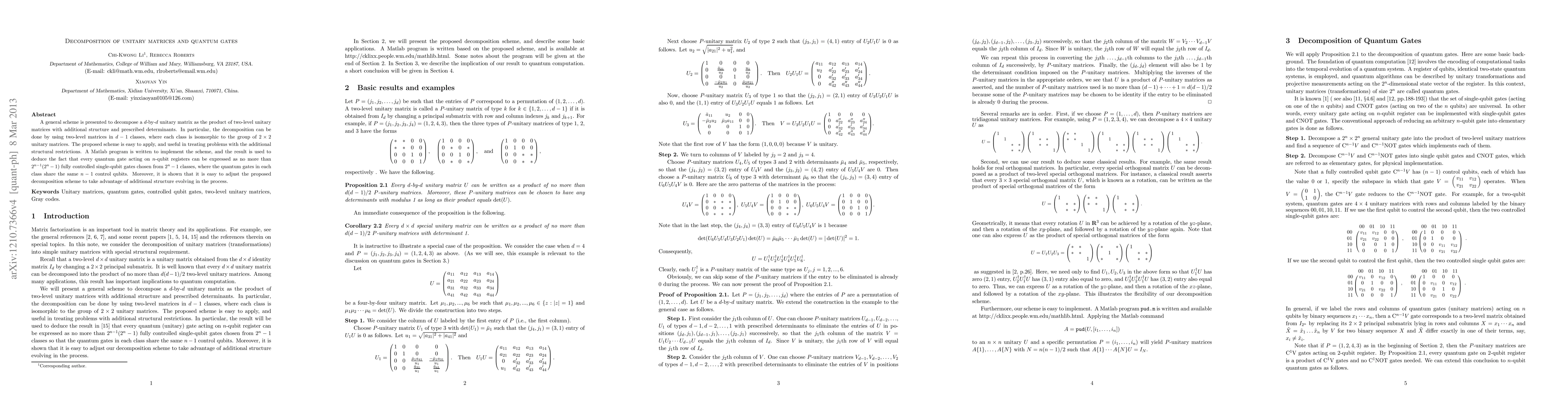 This research presents a decomposition method for $d$-by-$d$ unitary matrices into structured two-level matrices, facilitating the analysis of quantum gates. The scheme allows every quantum gate on $n$-qubits to be expressed as a combination of $2^{n-1}(2^n-1)$ controlled single-qubit gates from $2^n-1$ classes, sharing common control qubits.
