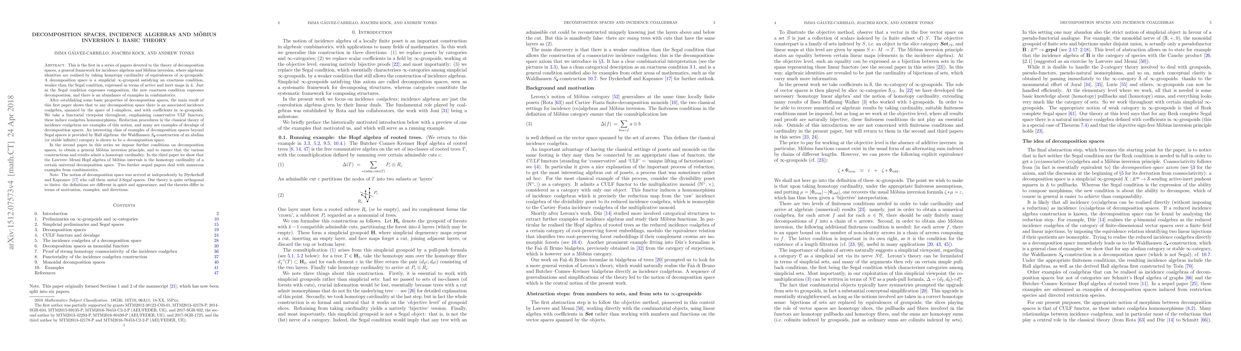 This paper introduces decomposition spaces, a novel framework for incidence algebras and M\"obius inversion, realized through homotopy cardinality of equivalences of $\infty$-groupoids. The main result establishes a connection between decomposition spaces and incidence coalgebras, providing a functorial approach and highlighting examples in combinatorics and Hall algebras.