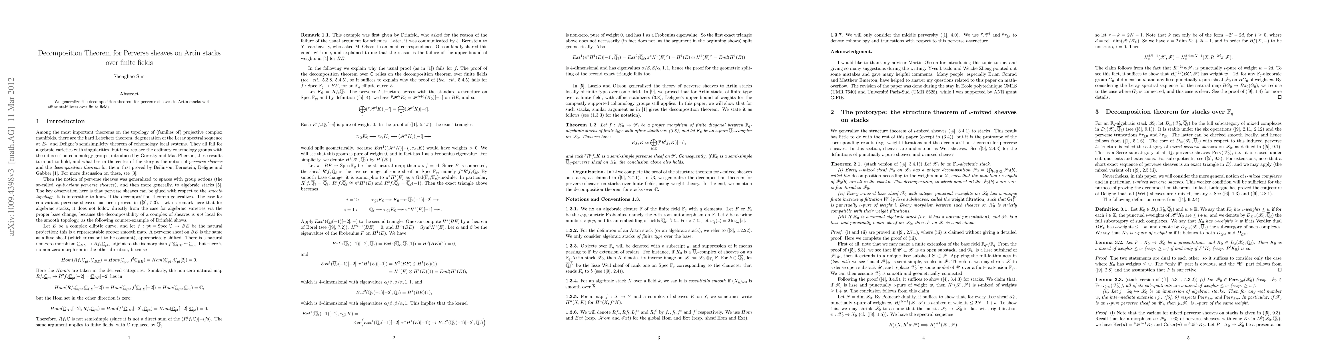The paper generalizes the decomposition theorem for perverse sheaves to Artin stacks with affine stabilizers over finite fields, extending previous results applicable to schemes. This advancement provides a more flexible framework for analyzing perverse sheaves in a broader categorical setting.
