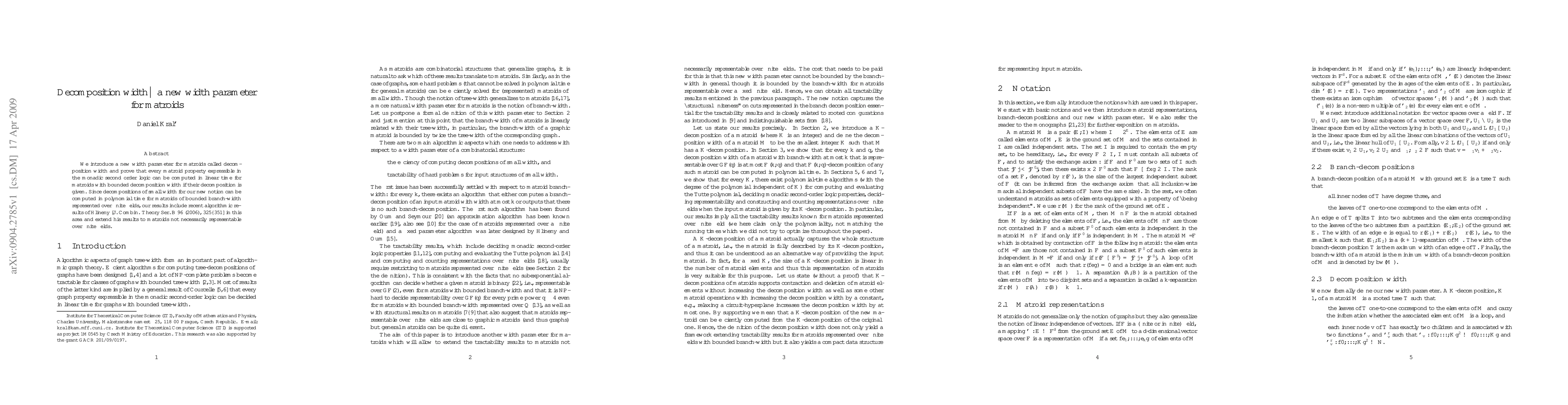 This paper introduces a new width parameter called decomposition width for matroids, proving that any property expressible in monadic second-order logic can be computed in linear time for matroids with bounded decomposition width, provided their decomposition is given. The authors also show that decompositions of small width can be computed in polynomial time for matroids of bounded branch-width over finite fields, extending previous algorithmic results to a broader class of matroids.