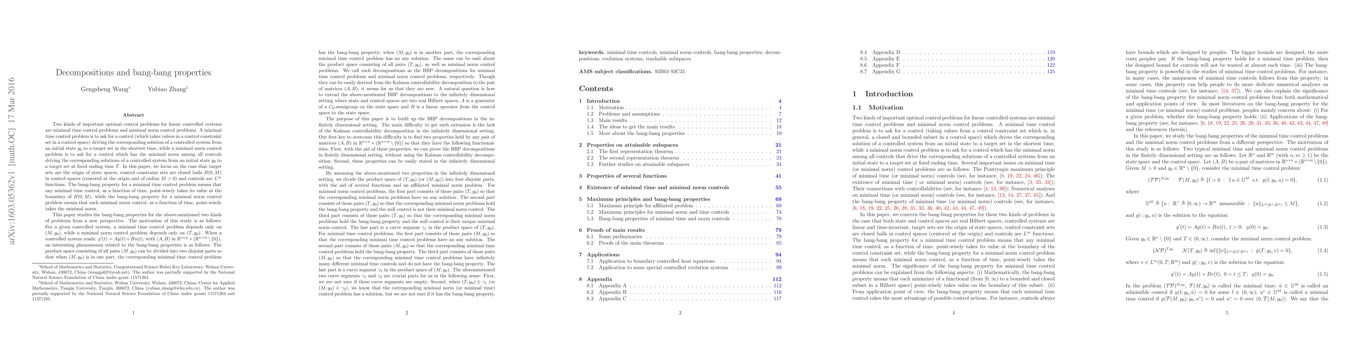 In this paper, minimal time and minimal norm control problems are studied. The target sets considered are the origin of state spaces and controls are point-wisely bounded functions. The system stuided in this paper is assumed to have no the null controllability or the backward uniqueness property. In this study, minimal time and minimal norm control problems depend on two parameters, respectively. Whether these problems hold the bang-bang property also depend on the parameters. We study the bang-bang property for different parameters for minimal time and minimal norm control problems, by assuming some kinds of weak controllability and unique continuation property. These two properties automatically hold for general time-invariant finitely dimensional controlled systems.