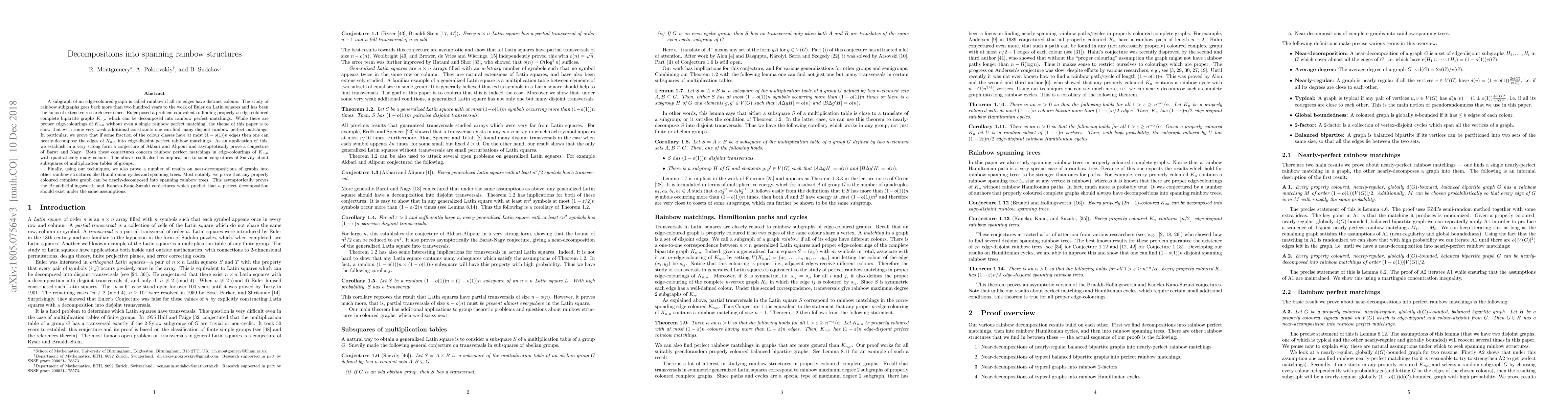 A subgraph of an edge-coloured graph is called rainbow if all its edges have distinct colours. The study of rainbow subgraphs goes back more than two hundred years to the work of Euler on Latin squares and has been the focus of extensive research ever since. Euler posed a problem equivalent to finding properly $n$-edge-coloured complete bipartite graphs $K_{n,n}$ which can be decomposed into rainbow perfect matchings. While there are proper edge-colourings of $K_{n,n}$ without even a single rainbow perfect matching, the theme of this paper is to show that with some very weak additional constraints one can find many disjoint rainbow perfect matchings. In particular, we prove that if some fraction of the colour classes have at most $(1-o(1)) n$ edges then one can nearly-decompose the edges of $K_{n,n}$ into edge-disjoint perfect rainbow matchings. As an application of this, we establish in a very strong form a conjecture of Akbari and Alipour and asymptotically prove a conjecture of Barat and Nagy. Both these conjectures concern rainbow perfect matchings in edge-colourings of $K_{n,n}$ with quadratically many colours. Using our techniques, we also prove a number of results on near-decompositions of graphs into other rainbow structures like Hamiltonian cycles and spanning trees. Most notably, we prove that any properly coloured complete graph can be nearly-decomposed into spanning rainbow trees. This asymptotically proves the Brualdi-Hollingsworth and Kaneko-Kano-Suzuki conjectures which predict that a perfect decomposition should exist under the same assumptions.