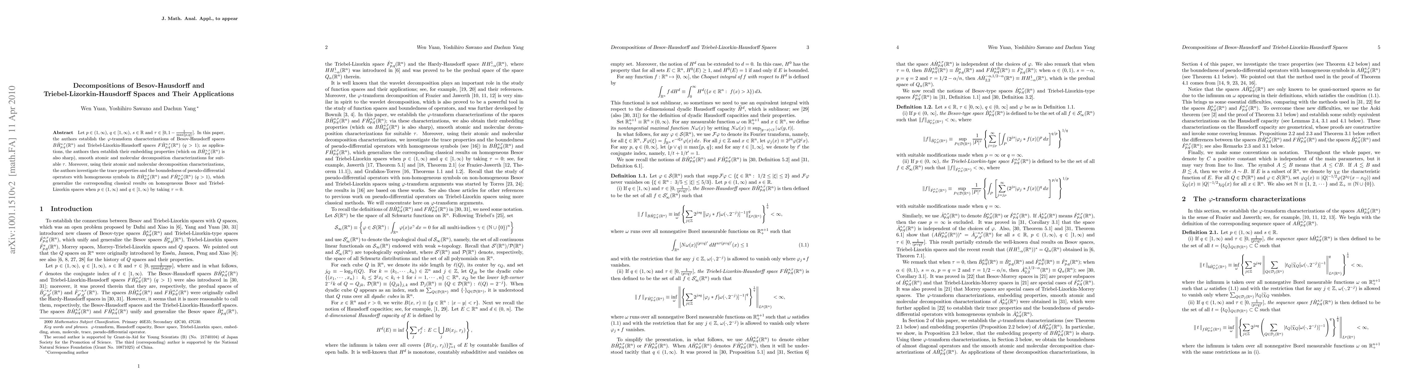 Let $p\in(1,\infty)$, $q\in[1,\infty)$, $s\in\mathbb{R}$ and $\tau\in[0, 1-\frac{1}{\max\{p,q\}}]$. In this paper, the authors establish the $\varphi$-transform characterizations of Besov-Hausdorff spaces $B{\dot H}_{p,q}^{s,\tau}(\mathbb{R}^n)$ and Triebel-Lizorkin-Hausdorff spaces $F{\dot H}_{p,q}^{s,\tau}(\mathbb{R}^n)$ ($q>1$); as applications, the authors then establish their embedding properties (which on $B{\dot H}_{p,q}^{s,\tau}(\mathbb{R}^n)$ is also sharp), smooth atomic and molecular decomposition characterizations for suitable $\tau$. Moreover, using their atomic and molecular decomposition characterizations, the authors investigate the trace properties and the boundedness of pseudo-differential operators with homogeneous symbols in $B{\dot H}_{p,q}^{s,\tau}(\mathbb{R}^n)$ and $F{\dot H}_{p,q}^{s,\tau}(\mathbb{R}^n)$ ($q>1$), which generalize the corresponding classical results on homogeneous Besov and Triebel-Lizorkin spaces when $p\in(1,\infty)$ and $q\in[1,\infty)$ by taking $\tau=0$.