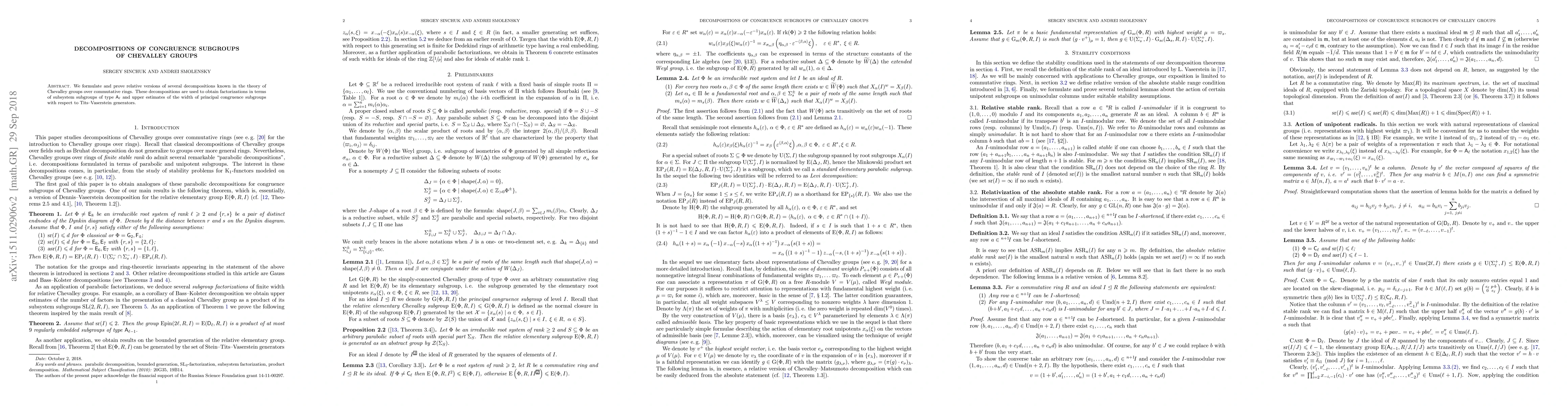 We formulate and prove relative versions of several classical decompositions known in the theory of Chevalley groups over commutative rings. As an application we obtain upper estimates for the width of principal congruence subgroups in terms of several families of generators. Some of our results are new even in the absolute case and were previously studied only for groups over finite fields.