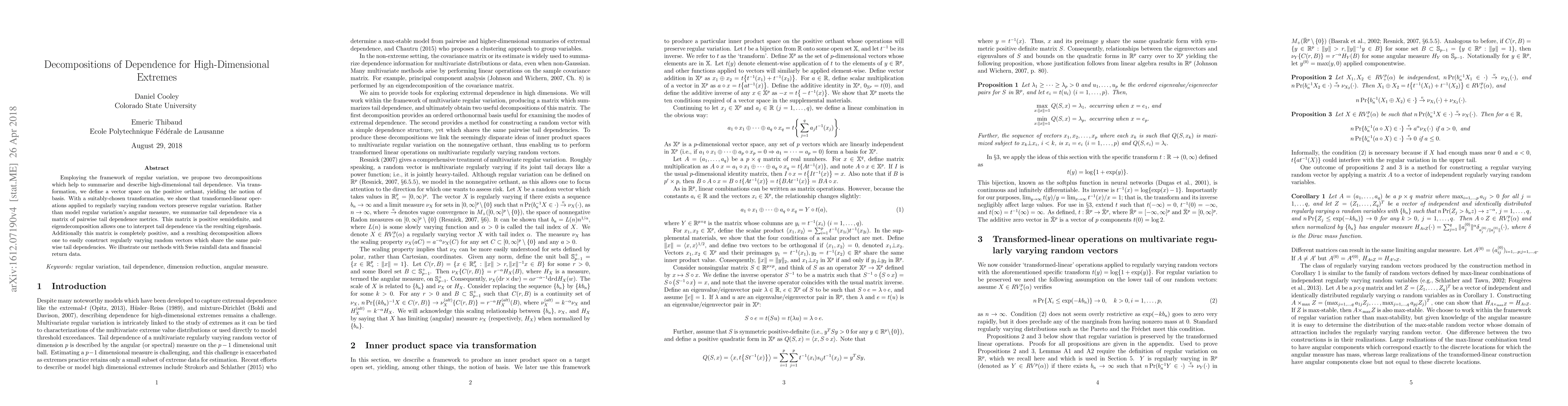This paper proposes two decompositions to summarize high-dimensional tail dependence using regular variation, defining a vector space on the positive orthant and showing that transformed-linear operations preserve regular variation. It introduces a positive semidefinite matrix of pairwise tail dependence metrics, allowing interpretation via eigendecomposition and construction of random vectors with identical pairwise tail dependencies.