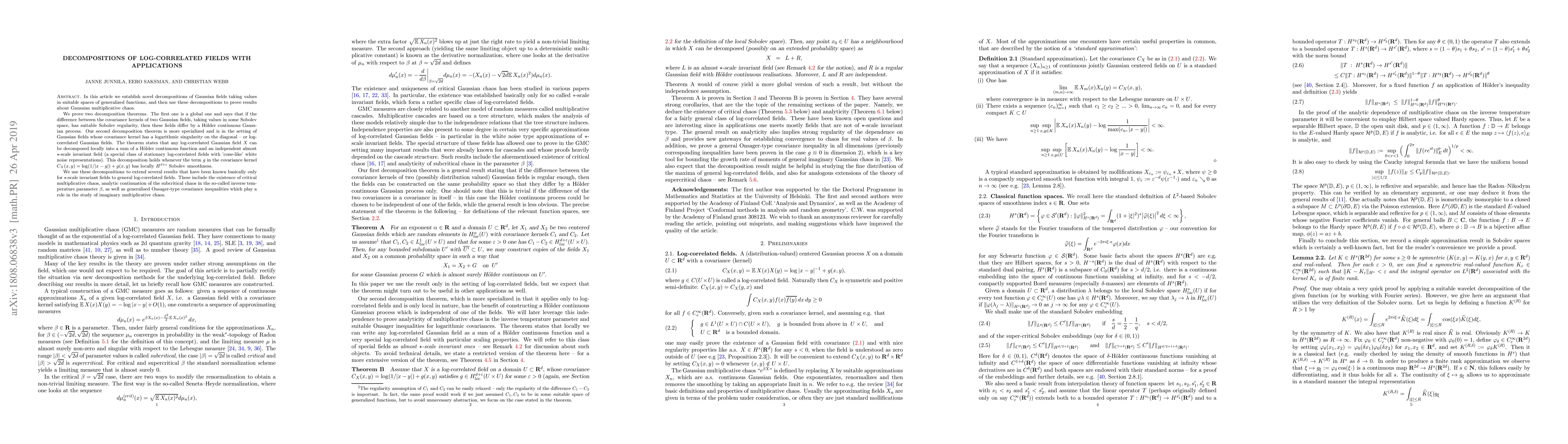 The paper introduces and proves two novel decomposition theorems for Gaussian fields, extending known results to a broader class of log-correlated fields.