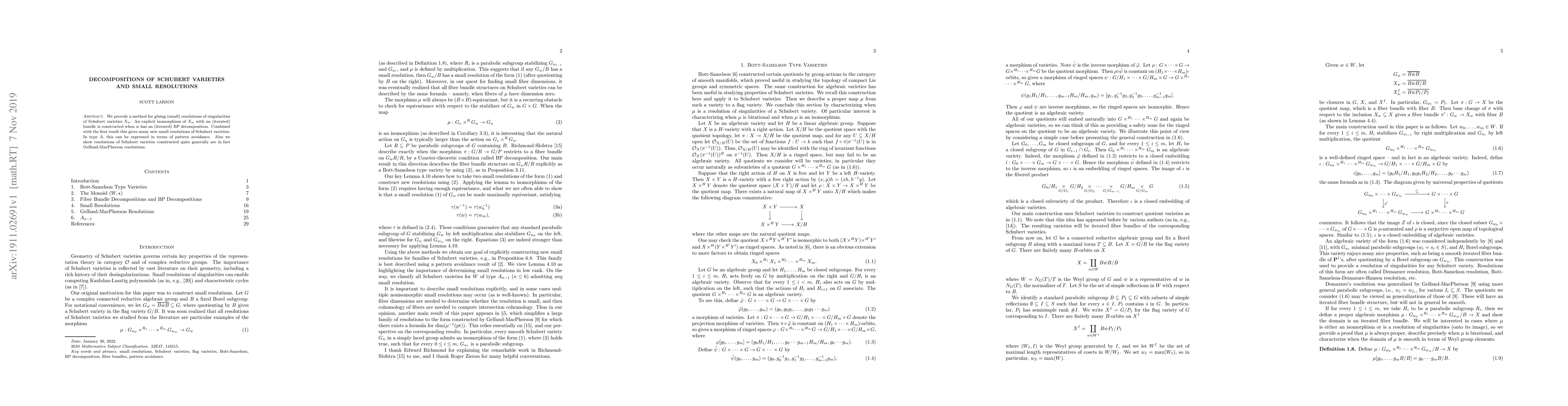 This paper introduces a method for constructing small resolutions of Schubert varieties \(X_w\) by gluing them based on (iterated) BP decompositions. It also establishes a connection between these resolutions and Gelfand-MacPherson resolutions in type A, using pattern avoidance.