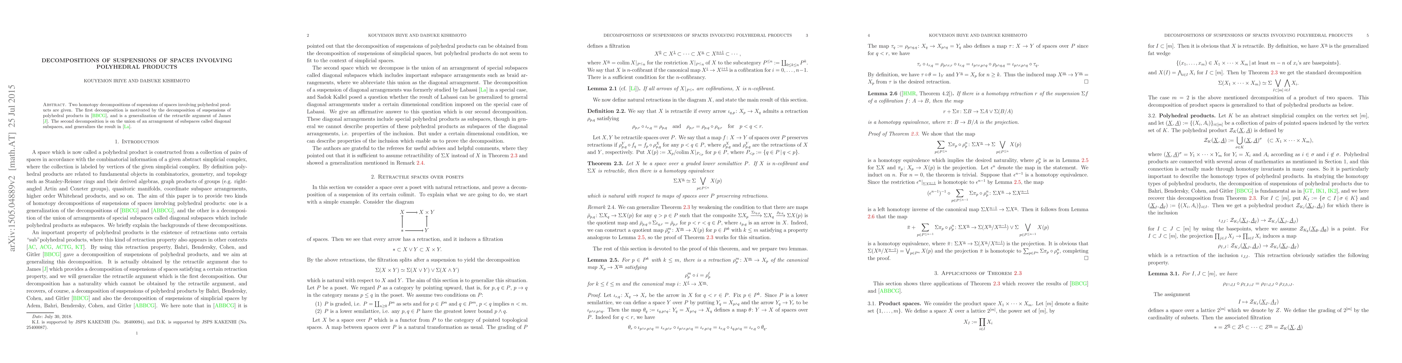 This paper presents two homotopy decompositions of suspensions involving polyhedral products, generalizing previous work by Bahri et al. and Labbasi, respectively. The first generalizes James' retractile argument, while the second pertains to the union of diagonal subspaces.