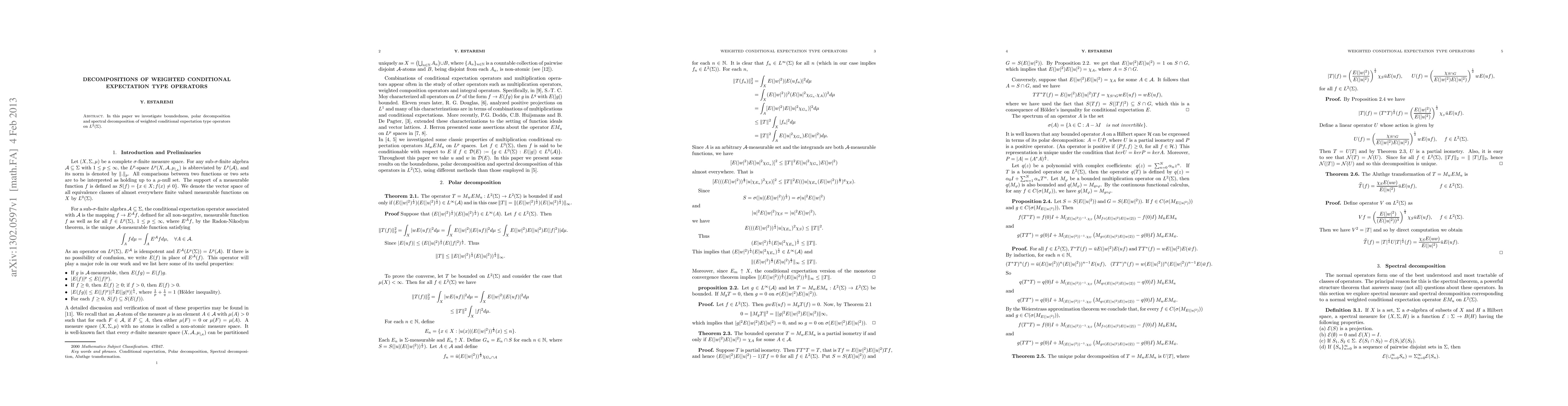 This paper explores the boundedness, polar decomposition, and spectral decomposition properties of weighted conditional expectation type operators within the framework of L^2(\Sigma), aiming to deepen understanding of their mathematical structure and behavior.