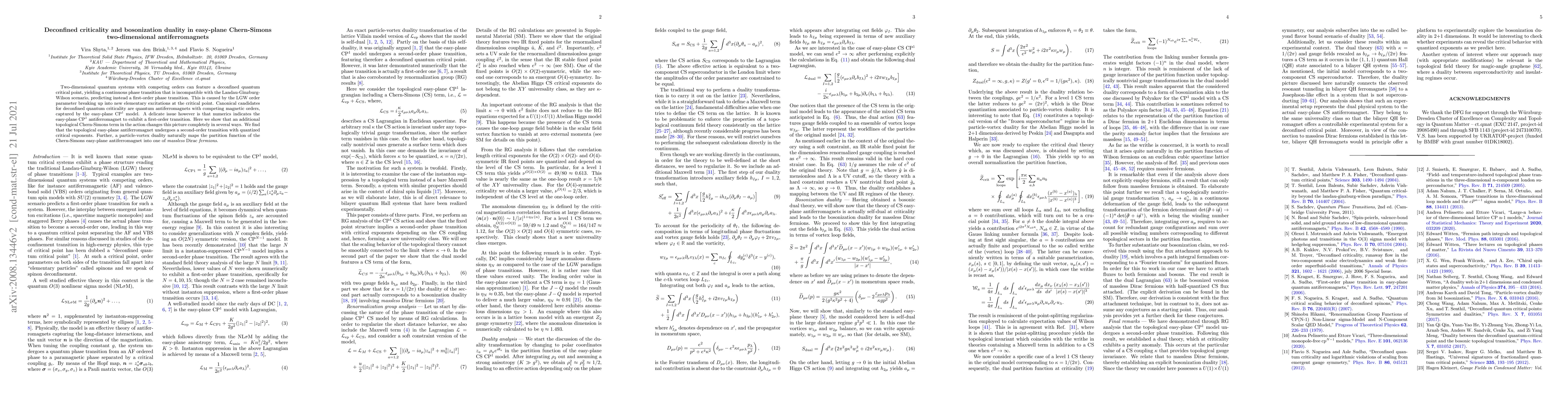 This paper investigates the deconfined quantum criticality in two-dimensional antiferromagnets, revealing that a topological Chern-Simons term transforms the system from a first-order to a second-order transition with unique critical exponents, and establishes a bosonization duality linking the model to massless Dirac fermions.