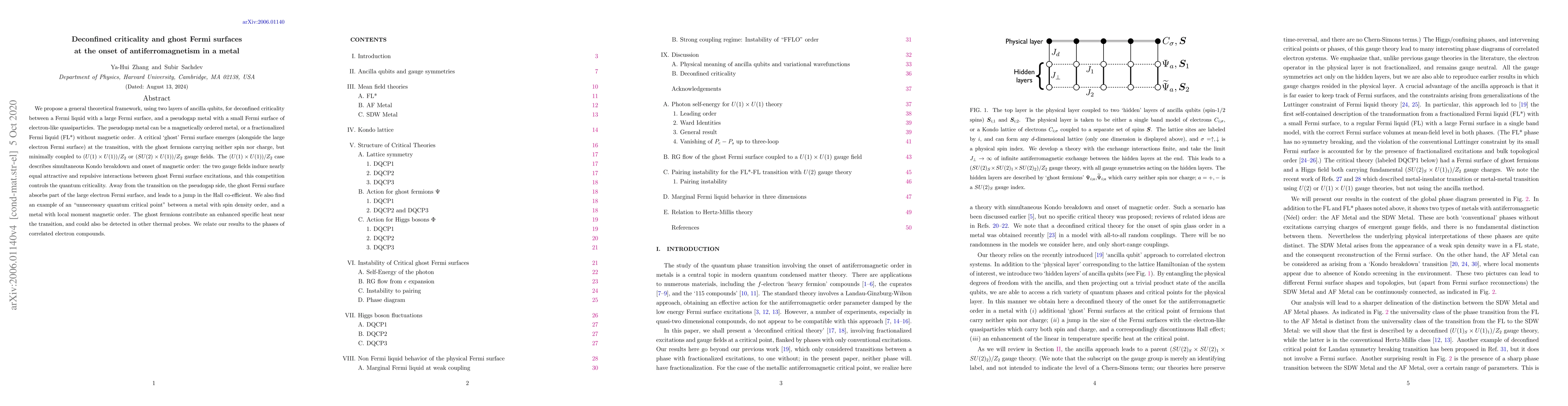 This paper proposes a theoretical framework for deconfined criticality at the onset of antiferromagnetism in metals, introducing a critical 'ghost' Fermi surface with unique properties. The ghost fermions, coupled to specific gauge fields, influence the quantum criticality and contribute to enhanced specific heat, potentially detectable in thermal probes.