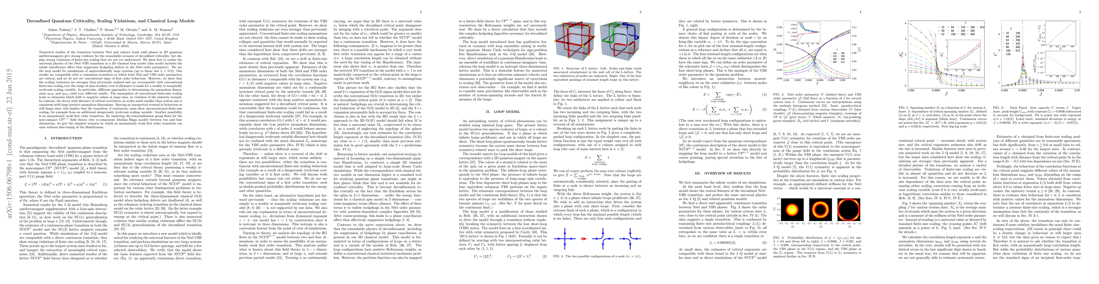 Numerical studies of the N\'eel to valence-bond solid phase transition in 2D quantum antiferromagnets give strong evidence for the remarkable scenario of deconfined criticality, but display strong violations of finite-size scaling that are not yet understood. We show how to realise the universal physics of the Neel-VBS transition in a 3D classical loop model (this includes the interference effect that suppresses N\'eel hedgehogs). We use this model to simulate unprecedentedly large systems (of size $L\leq 512$). Our results are compatible with a direct continuous transition at which both order parameters are critical, and we do not see conventional signs of first-order behaviour. However, we find that the scaling violations are stronger than previously realised and are incompatible with conventional finite-size scaling over the size range studied, even if allowance is made for a weakly/marginally irrelevant scaling variable. In particular, different determinations of the anomalous dimensions $\eta_\text{VBS}$ and $\eta_\text{N\'eel}$ yield very different results. The assumption of conventional finite-size scaling gives estimates which drift to negative values at large $L$, in violation of unitarity bounds. In contrast, the behaviour of correlators on scales much smaller than $L$ is consistent with large positive anomalous dimensions. Barring an unexpected reversal in behaviour at still larger sizes, this implies that the transition, if continuous, must show unconventional finite-size scaling, e.g. from a dangerously irrelevant scaling variable. Another possibility is an anomalously weak first-order transition. By analysing the renormalisation group flows for the non-compact $CP^{n-1}$ model ($n$-component Abelian Higgs model) between two and four dimensions, we give the simplest scenario by which an anomalously weak first-order transition can arise without fine-tuning of the Hamiltonian.