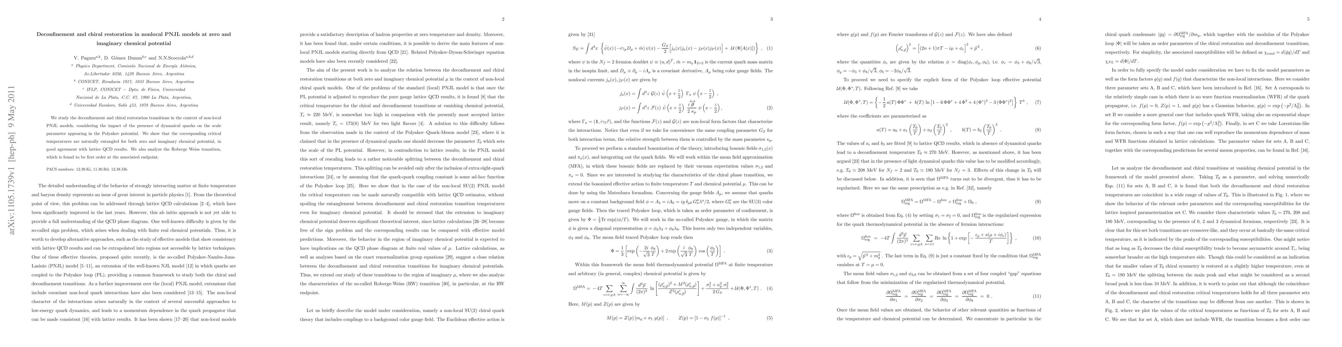 Summary: This paper investigates deconfinement and chiral restoration in non-local PNJL models, revealing entangled critical temperatures for zero and imaginary chemical potential, consistent with lattice QCD, and identifies a first-order Roberge Weiss transition at its endpoint.