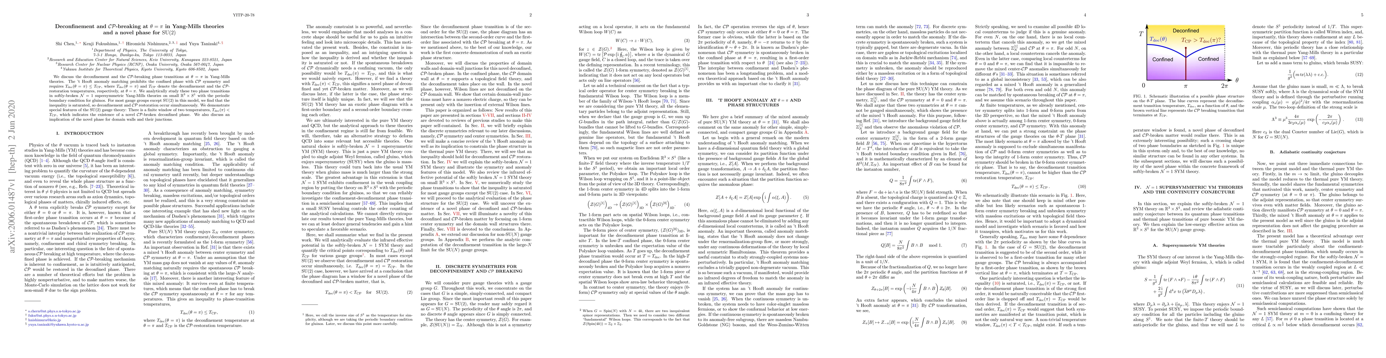 T_{CP}$, where $T_{dec}(\theta=\pi)$ and $T_{CP}$ denote the deconfinement and