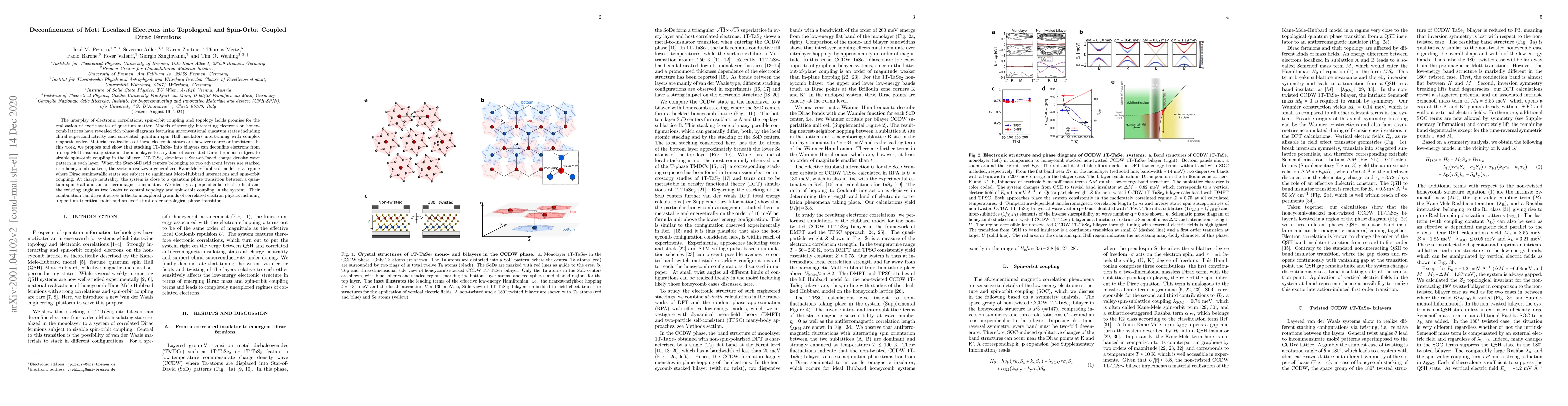 The interplay of electronic correlations, spin-orbit coupling and topology holds promise for the realization of exotic states of quantum matter. Models of strongly interacting electrons on honeycomb lattices have revealed rich phase diagrams featuring unconventional quantum states including chiral superconductivity and correlated quantum spin Hall insulators intertwining with complex magnetic order. Material realizations of these electronic states are however scarce or inexistent. In this work, we propose and show that stacking 1T-TaSe$_{2}$ into bilayers can deconfine electrons from a deep Mott insulating state in the monolayer to a system of correlated Dirac fermions subject to sizable spin-orbit coupling in the bilayer. 1T-TaSe$_{2}$ develops a Star-of-David (SoD) charge density wave pattern in each layer. When the SoD centers belonging to two adyacent layers are stacked in a honeycomb pattern, the system realizes a generalized Kane-Mele-Hubbard model in a regime where Dirac semimetallic states are subject to significant Mott-Hubbard interactions and spin-orbit coupling. At charge neutrality, the system is close to a quantum phase transition between a quantum spin Hall and an antiferromagnetic insulator. We identify a perpendicular electric field and the twisting angle as two knobs to control topology and spin-orbit coupling in the system. Their combination can drive it across hitherto unexplored grounds of correlated electron physics including a quantum tricritical point and an exotic first-order topological phase transition.
