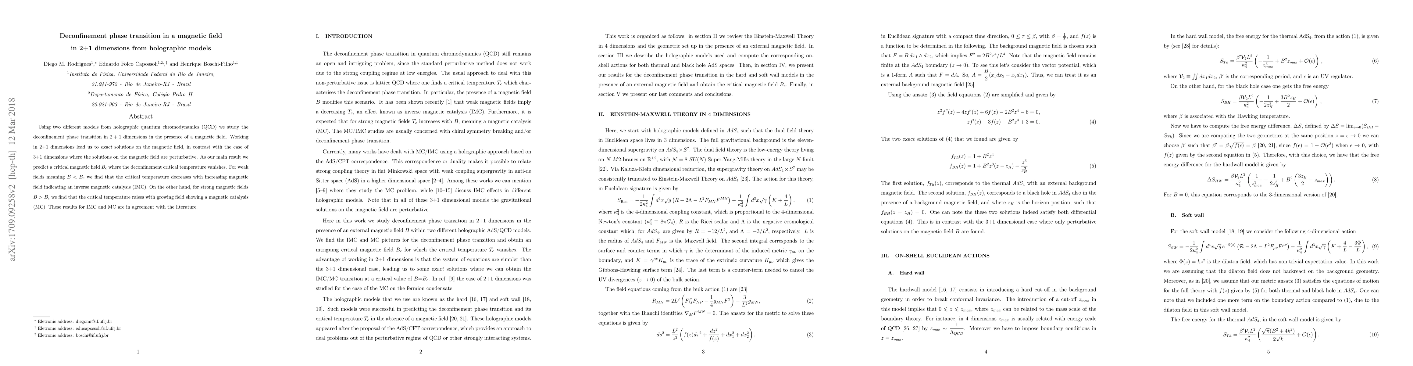 a critical magnetic field $B_c$ where the deconfinement critical temperature