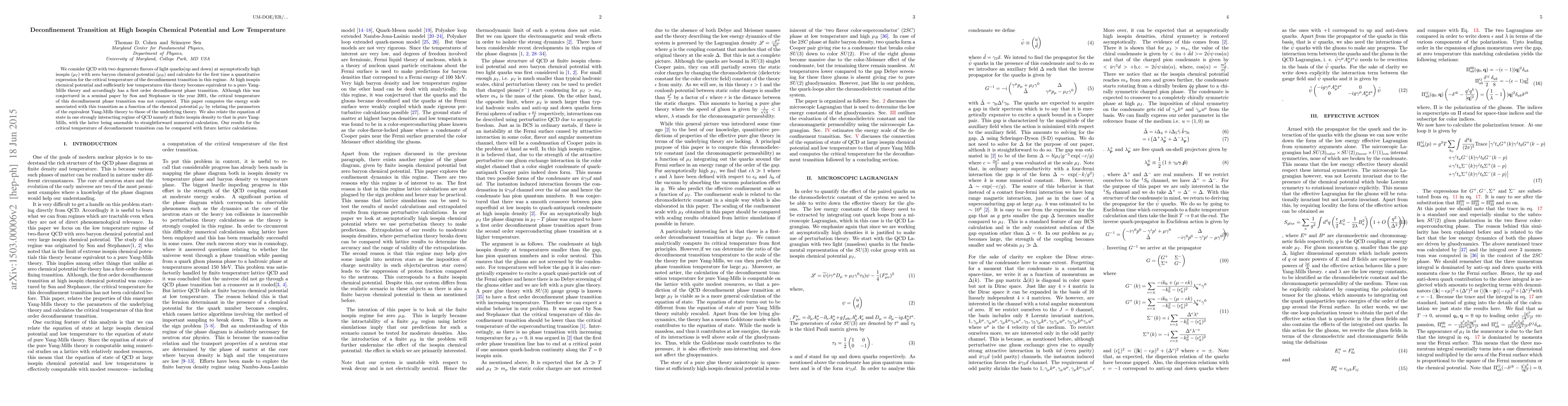 This paper calculates the critical temperature for the deconfinement transition in QCD with high isospin chemical potential, finding a first-order phase transition equivalent to a pure Yang-Mills theory. The results provide a quantitative expression for this transition, offering a basis for comparison with future lattice QCD calculations.