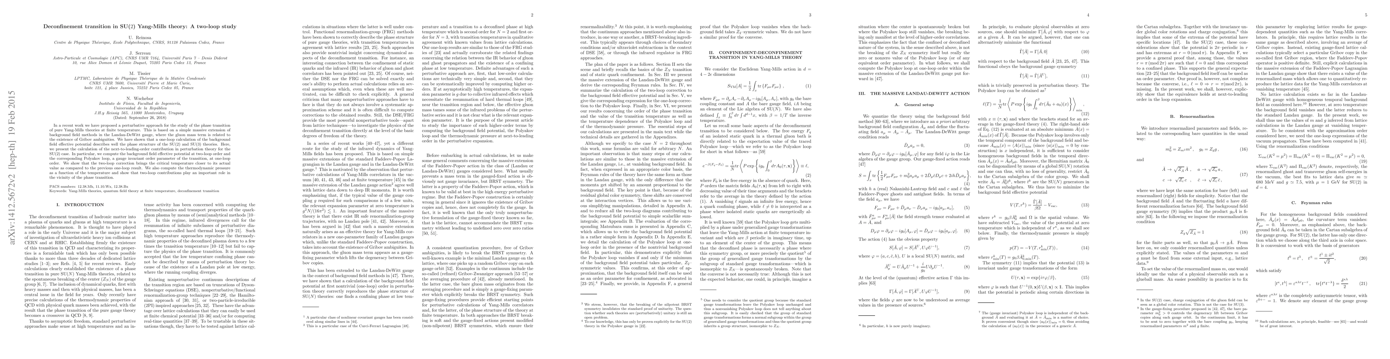 In a recent work we have proposed a perturbative approach for the study of the phase transition of pure Yang-Mills theories at finite temperature. This is based on a simple massive extension of background field methods in the Landau-DeWitt gauge, where the gluon mass term is related to the existence of Gribov ambiguities. We have shown that a one-loop calculation of the background field effective potential describes well the phase structure of the SU(2) and SU(3) theories. Here, we present the calculation of the next-to-leading-order contribution in perturbation theory for the SU(2) case. In particular, we compute the background field effective potential at two-loop order and the corresponding Polyakov loop, a gauge invariant order parameter of the transition, at one-loop order. We show that the two-loop correction brings the critical temperature closer to its actual value as compared to the previous one-loop result. We also compute the thermodynamic pressure as a function of the temperature and show that two-loop contributions play an important role in the vicinity of the phase transition.