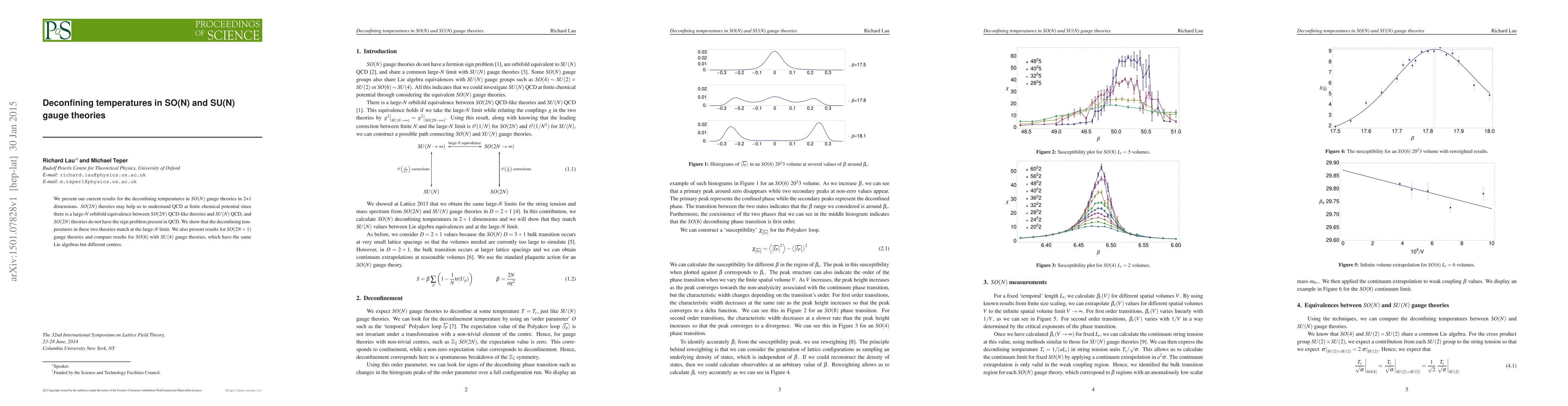 This research investigates deconfining temperatures in SO(N) gauge theories in 2+1 dimensions, highlighting a large-N equivalence between SO(2N) theories and SU(N) QCD, and demonstrating matching deconfining temperatures at the large-N limit. It also compares SO(2N+1) results with SU(N) gauge theories, noting differences due to differing centres.