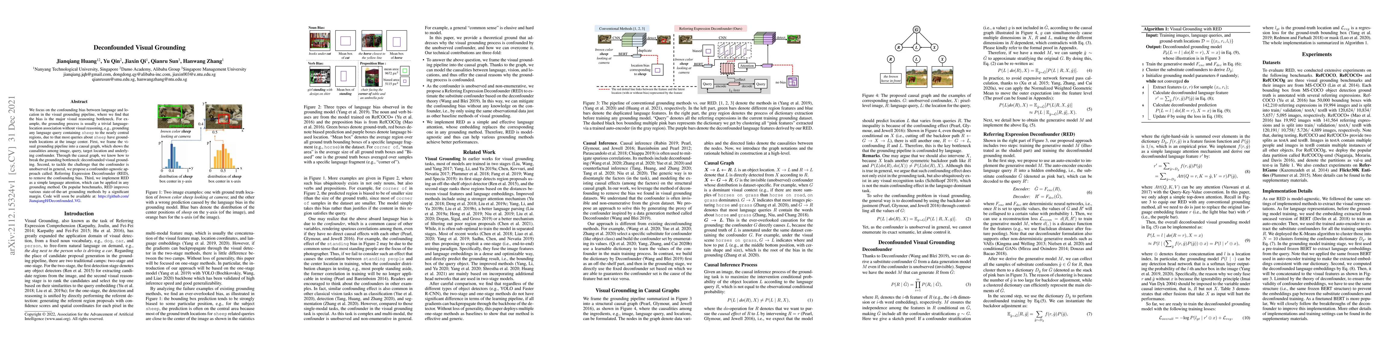 This paper addresses the confounding bias between language and location in visual grounding, identifying it as a major reasoning bottleneck. It introduces a Referring Expression Deconfounder (RED) to remove this bias, implemented as a simple language attention mechanism that significantly improves state-of-the-art grounding methods on benchmarks.