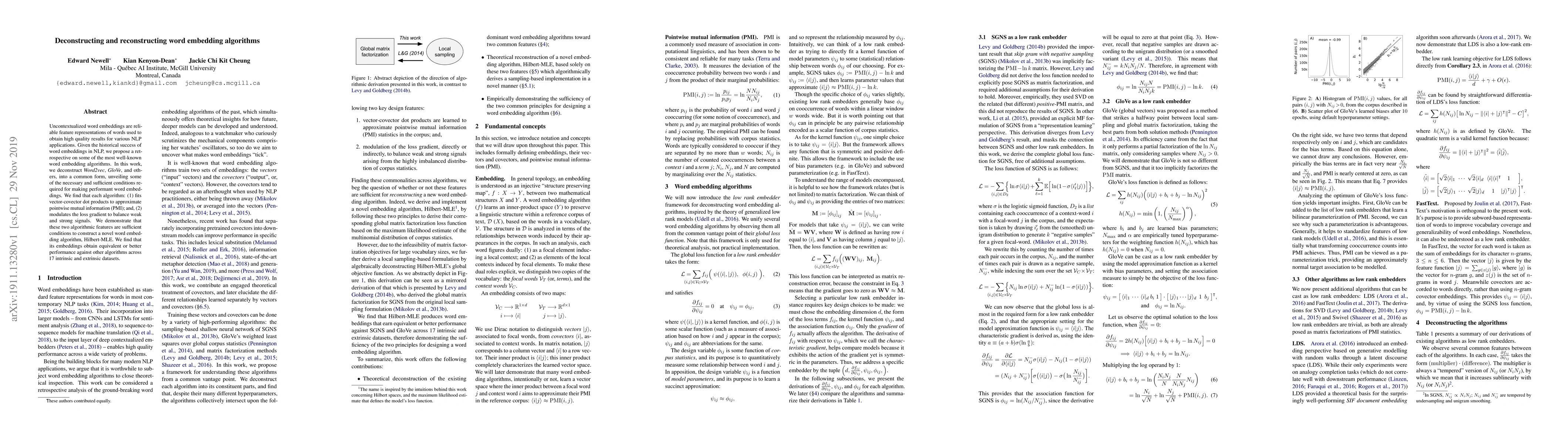 This paper deconstructs popular word embedding algorithms like Word2vec and GloVe, revealing that they both aim to approximate pointwise mutual information through vector-covector dot products and modulate loss gradients to balance signal strengths. The authors propose a new algorithm, Hilbert-MLE, which incorporates these features and achieves competitive performance across various NLP tasks.