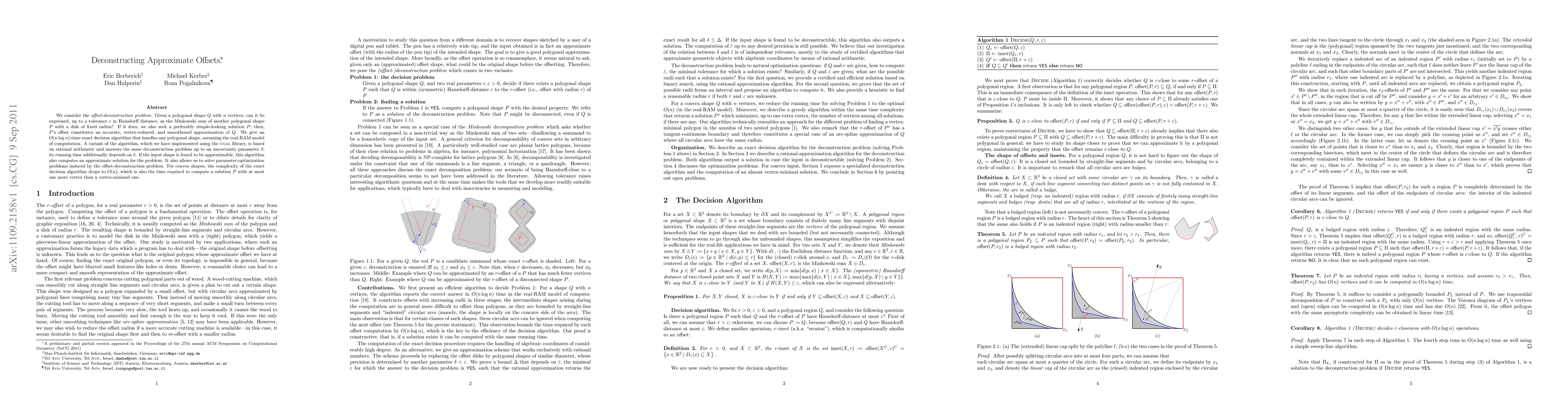 We consider the offset-deconstruction problem: Given a polygonal shape Q with n vertices, can it be expressed, up to a tolerance \eps in Hausdorff distance, as the Minkowski sum of another polygonal shape P with a disk of fixed radius? If it does, we also seek a preferably simple-looking solution P; then, P's offset constitutes an accurate, vertex-reduced, and smoothened approximation of Q. We give an O(n log n)-time exact decision algorithm that handles any polygonal shape, assuming the real-RAM model of computation. A variant of the algorithm, which we have implemented using CGAL, is based on rational arithmetic and answers the same deconstruction problem up to an uncertainty parameter \delta; its running time additionally depends on \delta. If the input shape is found to be approximable, this algorithm also computes an approximate solution for the problem. It also allows us to solve parameter-optimization problems induced by the offset-deconstruction problem. For convex shapes, the complexity of the exact decision algorithm drops to O(n), which is also the time required to compute a solution P with at most one more vertex than a vertex-minimal one.