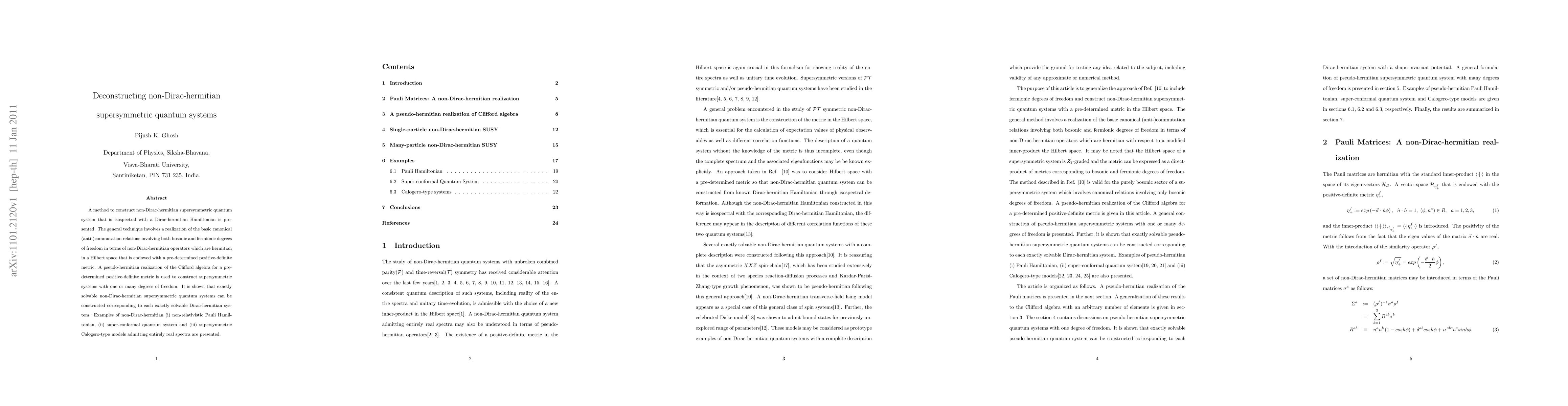 This paper introduces a method for constructing non-Dirac-hermitian supersymmetric quantum systems that are isospectral to Dirac-hermitian counterparts, using pseudo-hermitian operators and a specific positive-definite metric. Examples include the non-relativistic Pauli Hamiltonian, super-conformal quantum systems, and supersymmetric Calogero-type models.