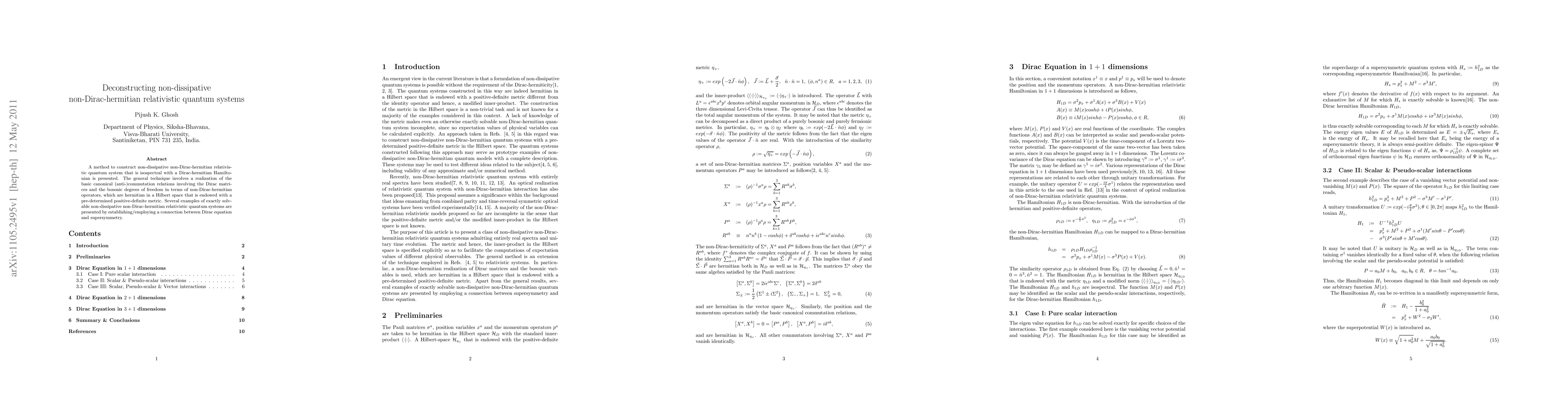 Summary: This paper introduces a method to construct non-dissipative non-Dirac-hermitian relativistic quantum systems that are isospectral to Dirac-hermitian Hamiltonians, employing non-Dirac-hermitian operators in a Hilbert space with a specific metric and connecting these systems to exactly solvable models via supersymmetry.
