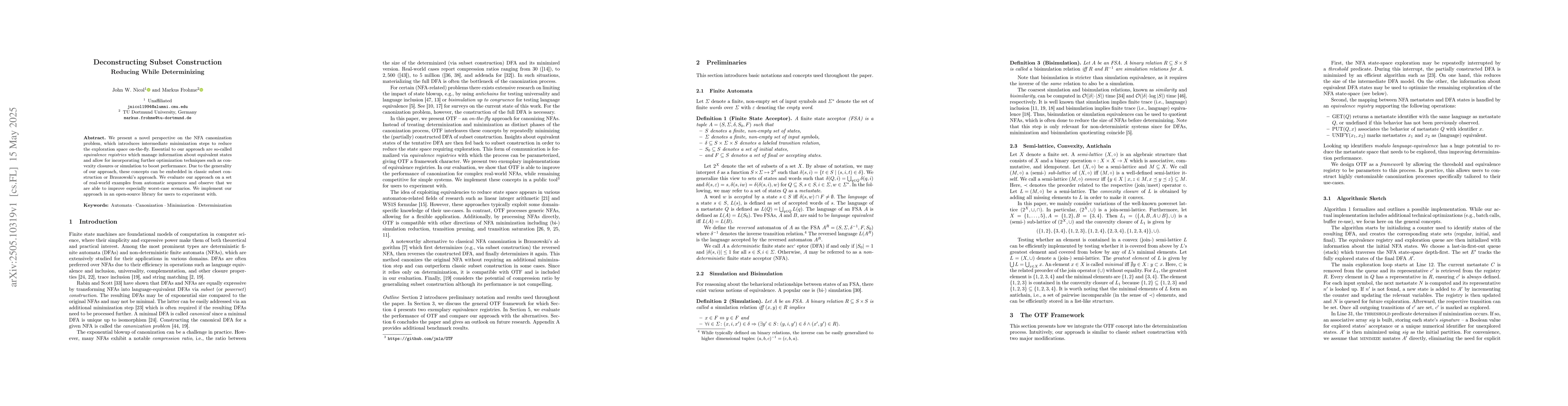 The approach distinguishes itself by incorporating intermediate minimization and on-the-fly reduction, enhancing traditional subset construction with additional optimizations.