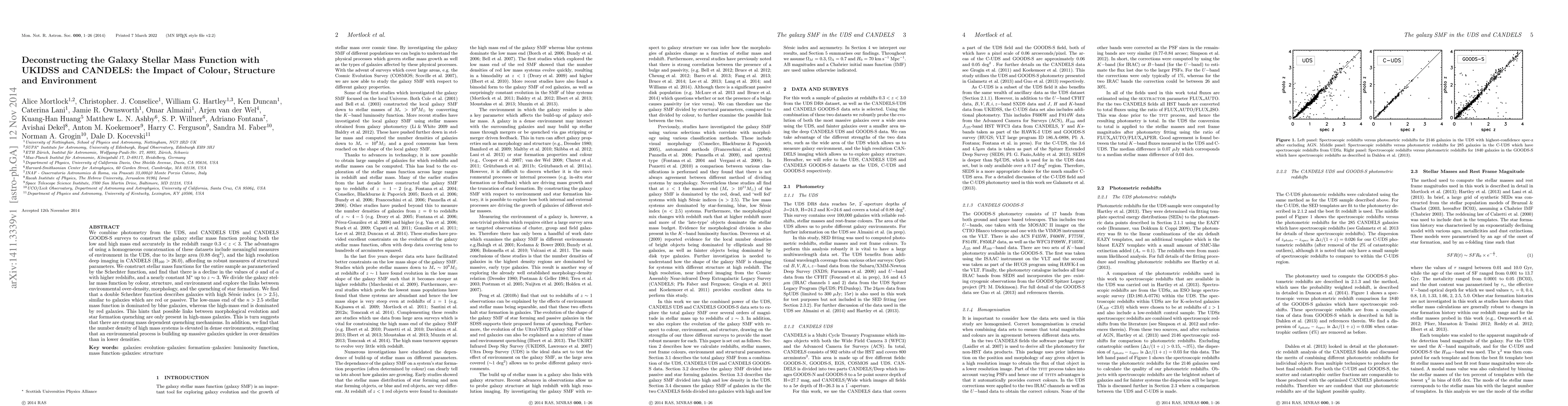 This paper combines UKIDSS and CANDELS survey data to construct the galaxy stellar mass function across redshifts 0.3<z<3, revealing mass-dependent quenching mechanisms and environmental influences on galaxy formation. It finds that high-mass galaxies in dense environments are more likely to be red and passive, suggesting a link between morphology and star formation quenching.