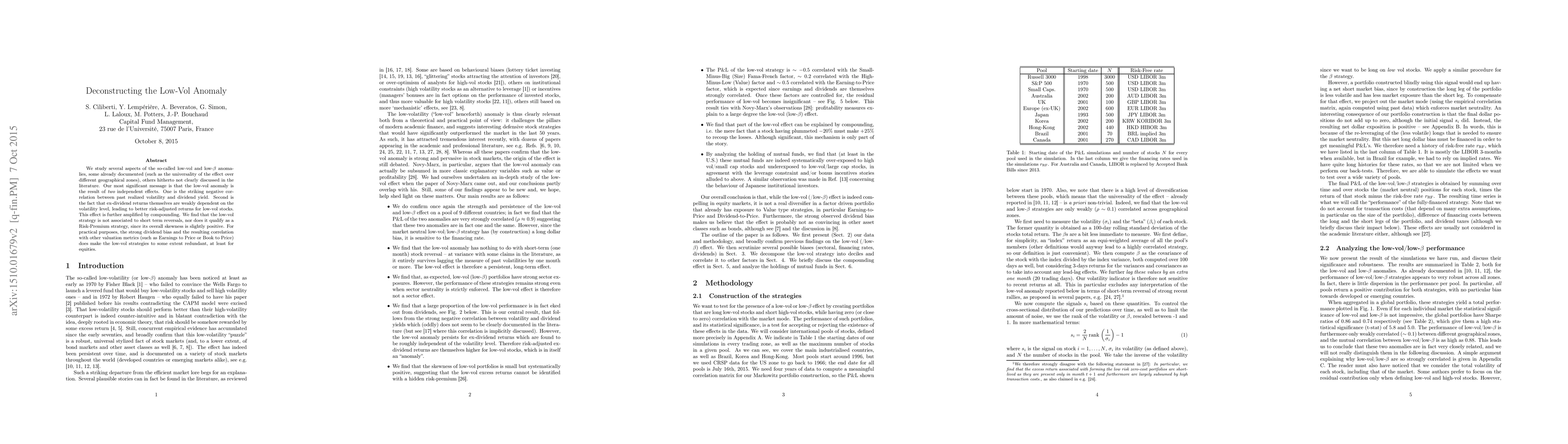 We study several aspects of the so-called low-vol and low-beta anomalies, some already documented (such as the universality of the effect over different geographical zones), others hitherto not clearly discussed in the literature. Our most significant message is that the low-vol anomaly is the result of two independent effects. One is the striking negative correlation between past realized volatility and dividend yield. Second is the fact that ex-dividend returns themselves are weakly dependent on the volatility level, leading to better risk-adjusted returns for low-vol stocks. This effect is further amplified by compounding. We find that the low-vol strategy is not associated to short term reversals, nor does it qualify as a Risk-Premium strategy, since its overall skewness is slightly positive. For practical purposes, the strong dividend bias and the resulting correlation with other valuation metrics (such as Earnings to Price or Book to Price) does make the low-vol strategies to some extent redundant, at least for equities.