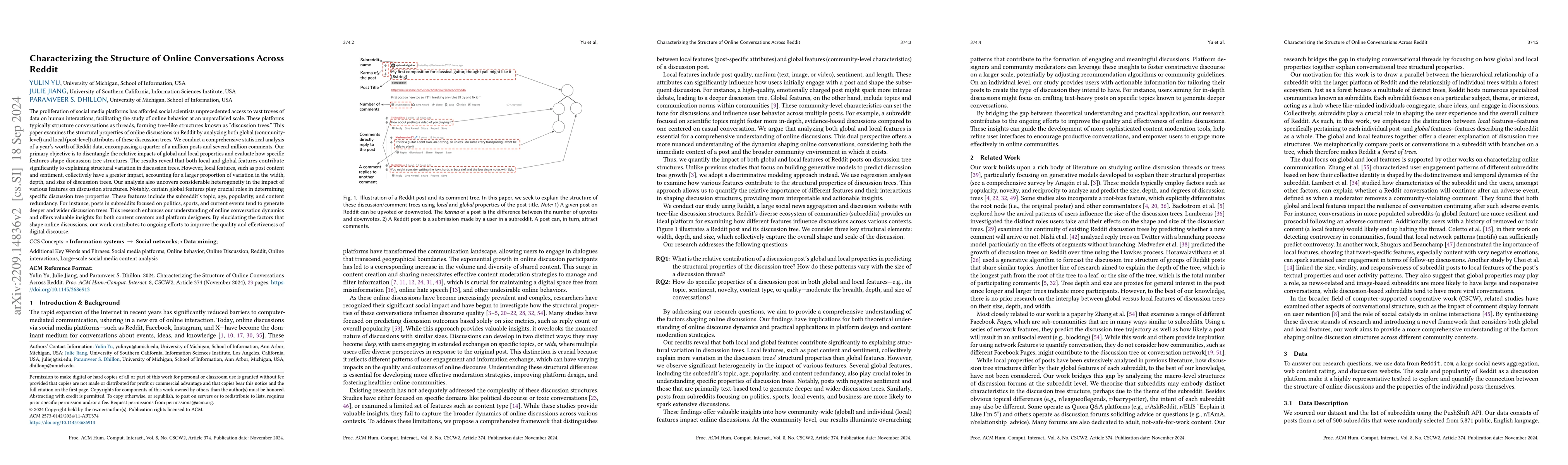 This paper analyzes the structural properties of online discussions on Reddit, identifying both global and local features that influence the tree-like structure of threads. Statistical analyses reveal that while local features dominate in explaining structural variation, global features like subreddit topic and content redundancy also significantly impact discussion dynamics.