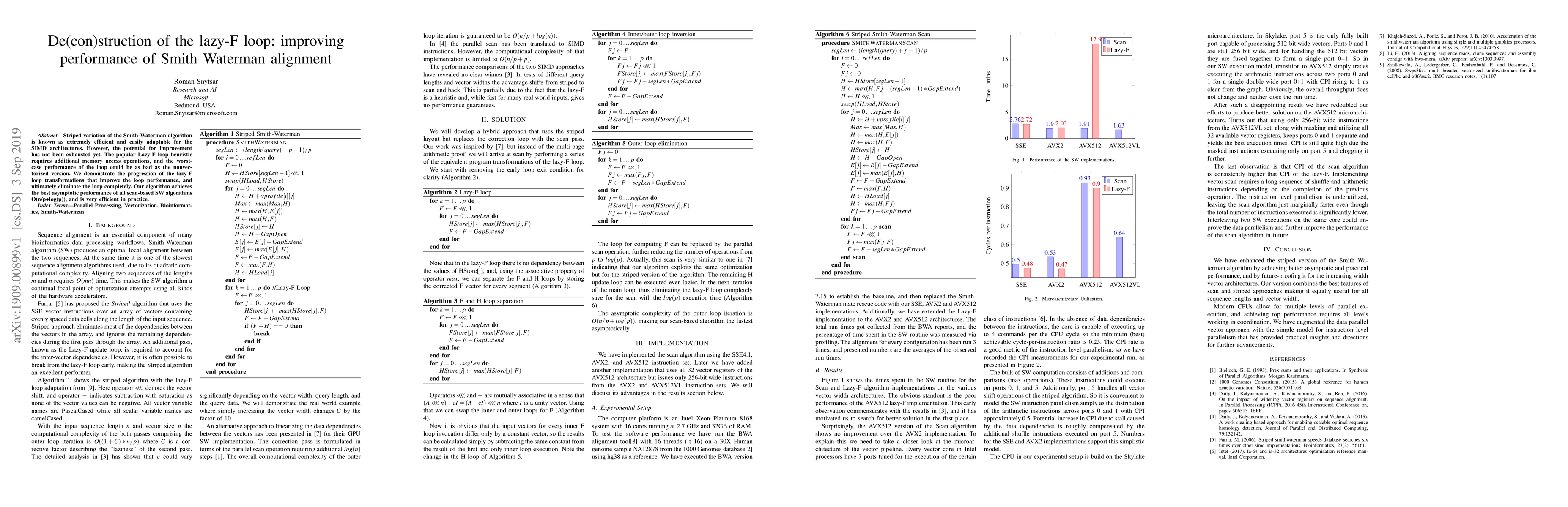 Researchers improved the performance of the Smith-Waterman alignment algorithm by eliminating a slow loop and achieving an asymptotic time complexity of O(n/p+log(p)).