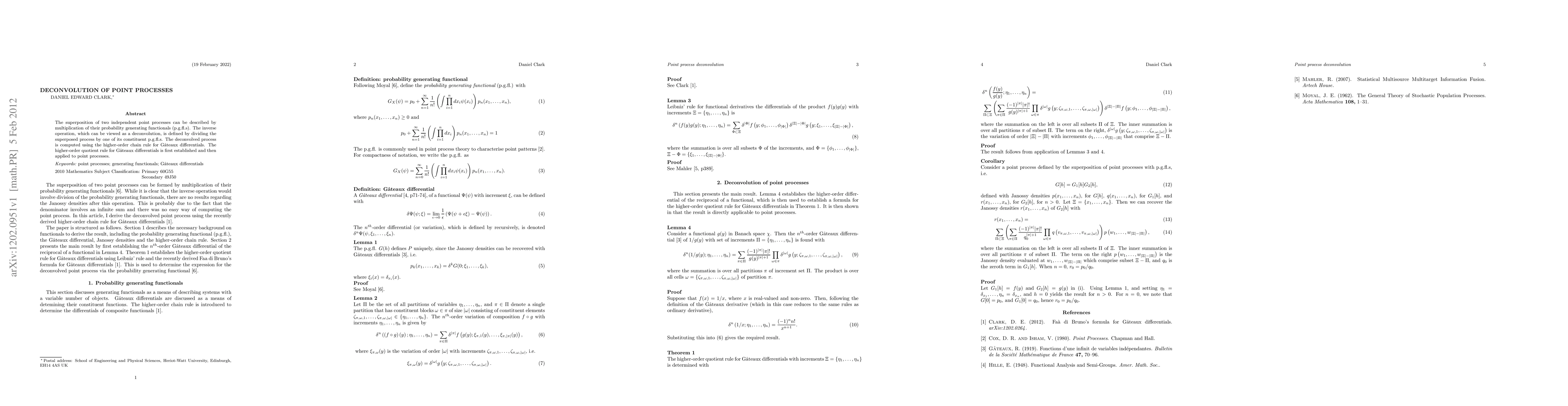 The superposition of two independent point processes can be described by multiplication of their probability generating functionals (p.g.fl.s). The inverse operation, which can be viewed as a deconvolution, is defined by dividing the superposed process by one of its constituent p.g.fl.s. The deconvolved process is computed using the higher-order chain rule for Gateaux differentials. The higher-order quotient rule for Gateaux differentials is first established and then applied to point processes.
