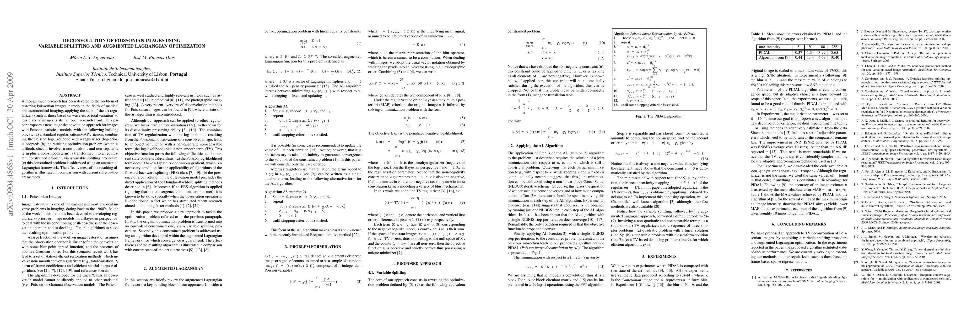 This paper introduces a new method for deconvolving Poissonian images using variable splitting and augmented Lagrangian optimization. It combines a Poisson log-likelihood with a regularizer to form a challenging optimization problem, which is tackled via a variable splitting procedure and solved using an augmented Lagrangian framework.