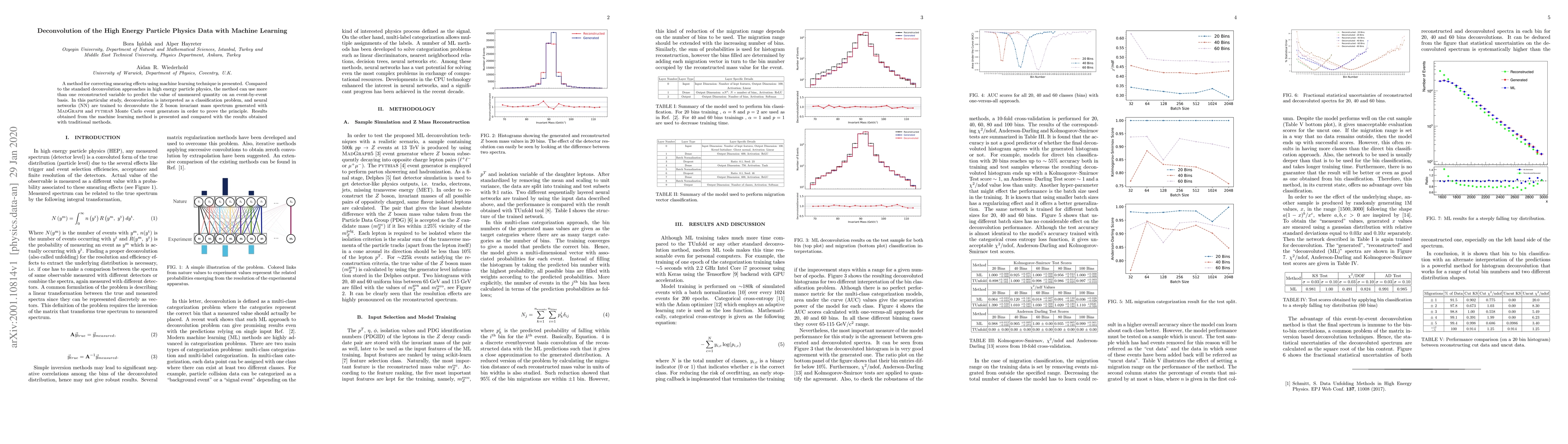 This paper proposes a machine learning approach to correct smearing effects in high energy particle physics data, utilizing neural networks trained to predict unsmeared quantities from multiple reconstructed variables. The method is tested on the Z boson invariant mass spectrum and compared to traditional deconvolution techniques.