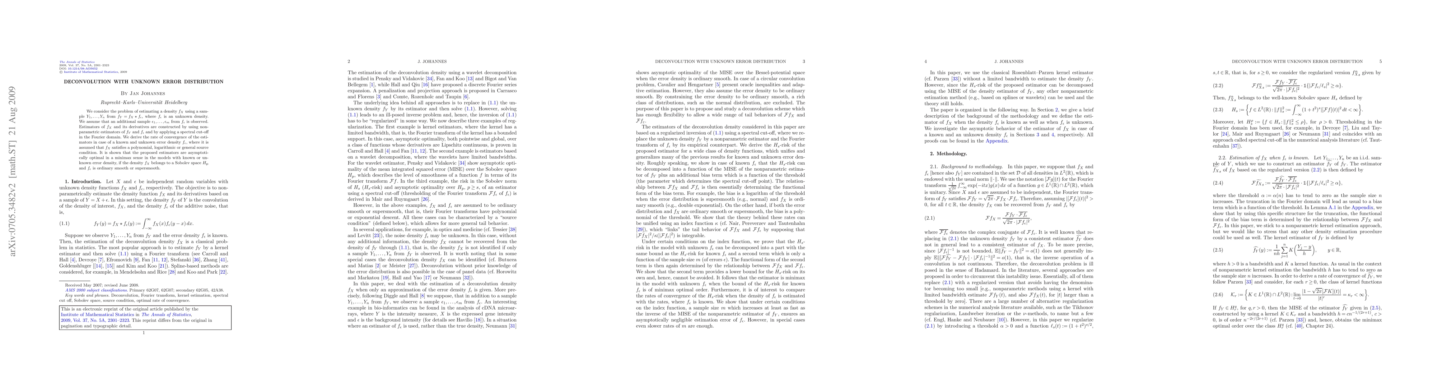 Researchers develop estimators for density estimation with unknown error distribution, finding asymptotic optimality in models with known or unknown error density, depending on the regularity of the target and error densities.