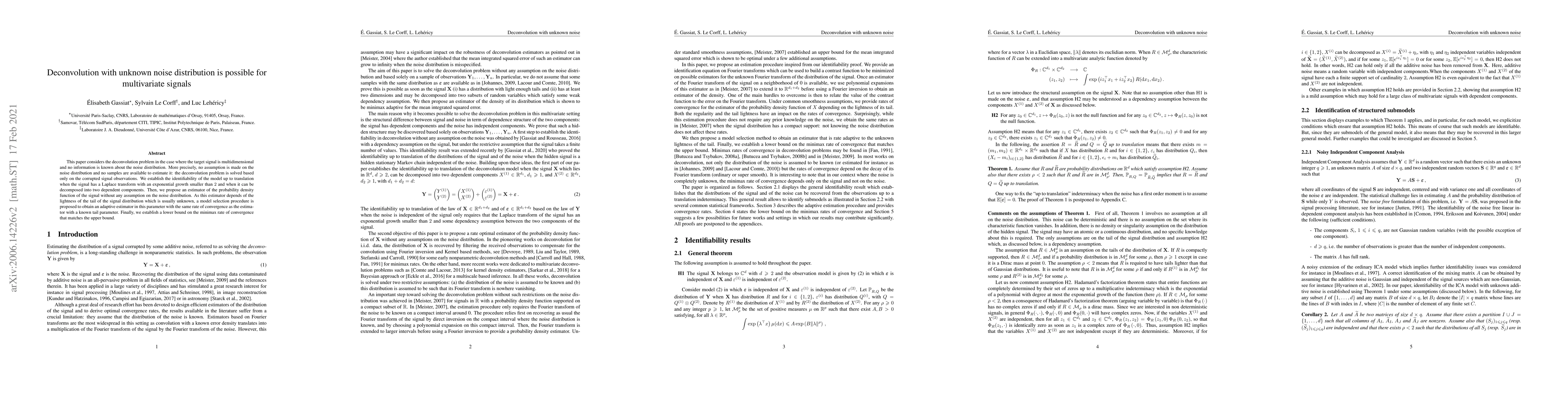 This paper addresses the deconvolution of multidimensional signals with unknown noise distribution, proposing an adaptive estimator for the signal's probability density function and establishing a minimax rate of convergence that matches the upper bound.