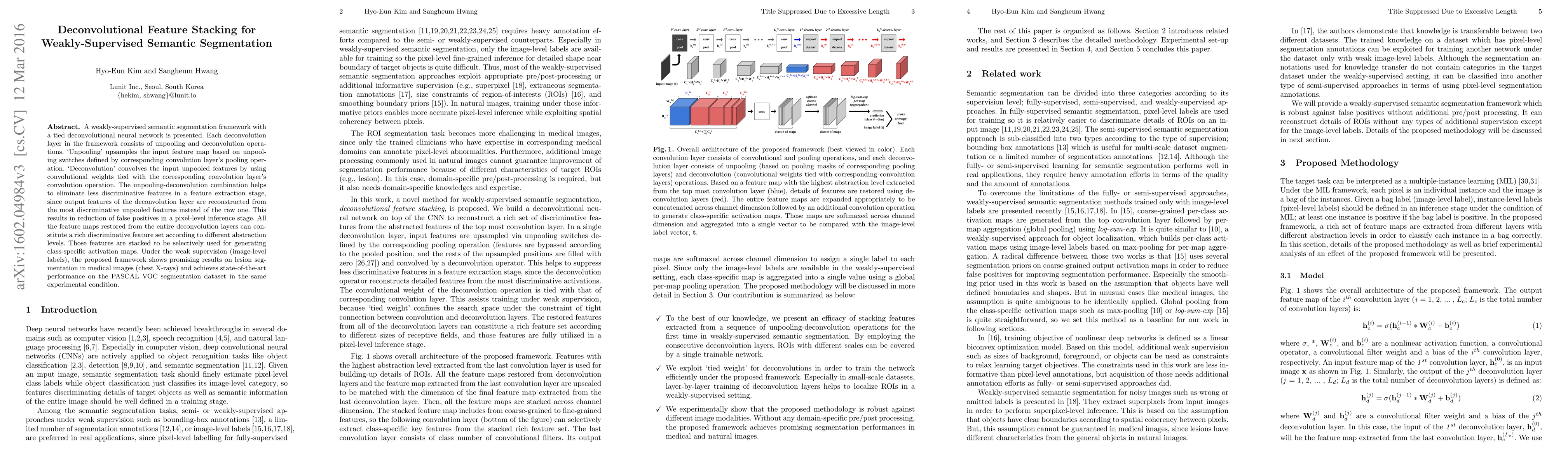 A weakly-supervised semantic segmentation framework uses a tied deconvolutional neural network to eliminate false positives in medical image analysis. It achieves state-of-the-art performance on the PASCAL VOC segmentation dataset.