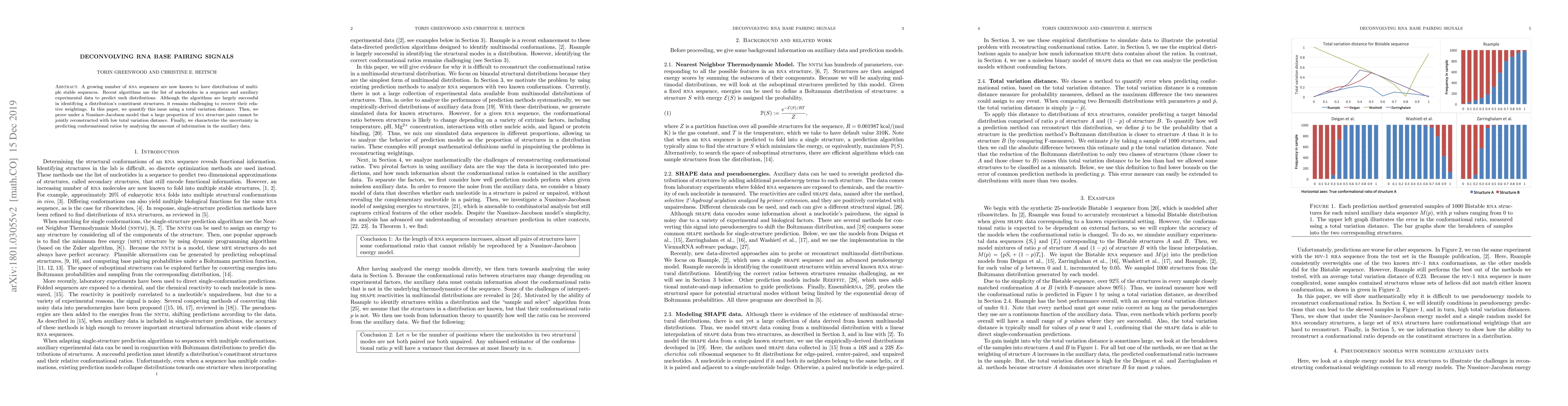 Researchers found that many RNA sequences have distributions of multiple stable structures, but recovering their relative weightings is challenging. They used a total variation distance to quantify this issue and proved that some pairs cannot be jointly reconstructed with low distance.