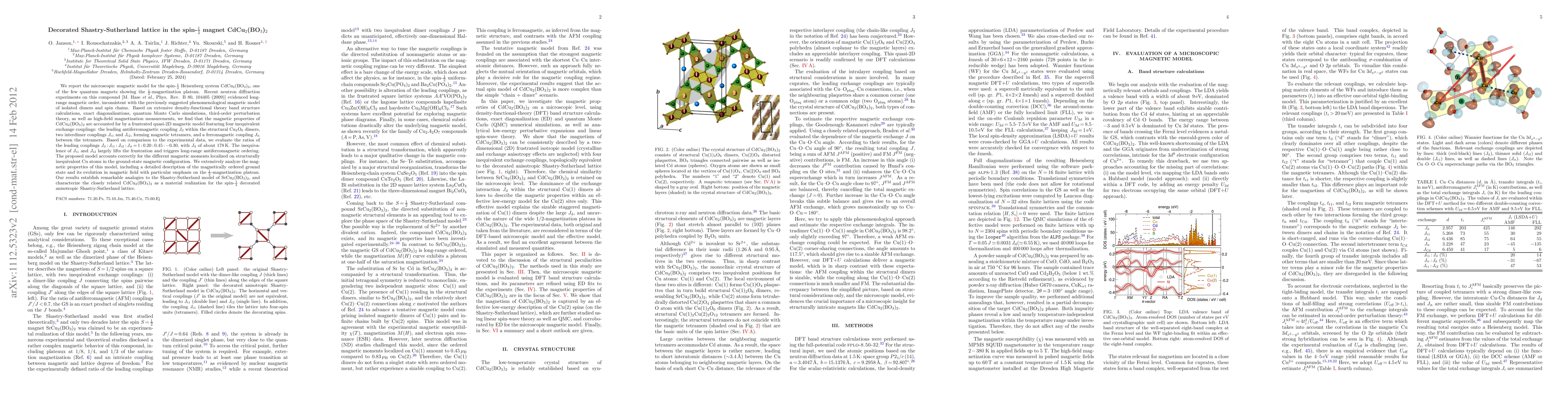 This paper proposes a detailed magnetic model for CdCu2(BO3)2, revealing a frustrated quasi-2D lattice with four inequivalent exchange couplings that explains its observed long-range magnetic order and 1/2-magnetization plateau, establishing it as a spin-1/2 decorated Shastry-Sutherland lattice. The model's parameters are derived from extensive theoretical and experimental analyses.