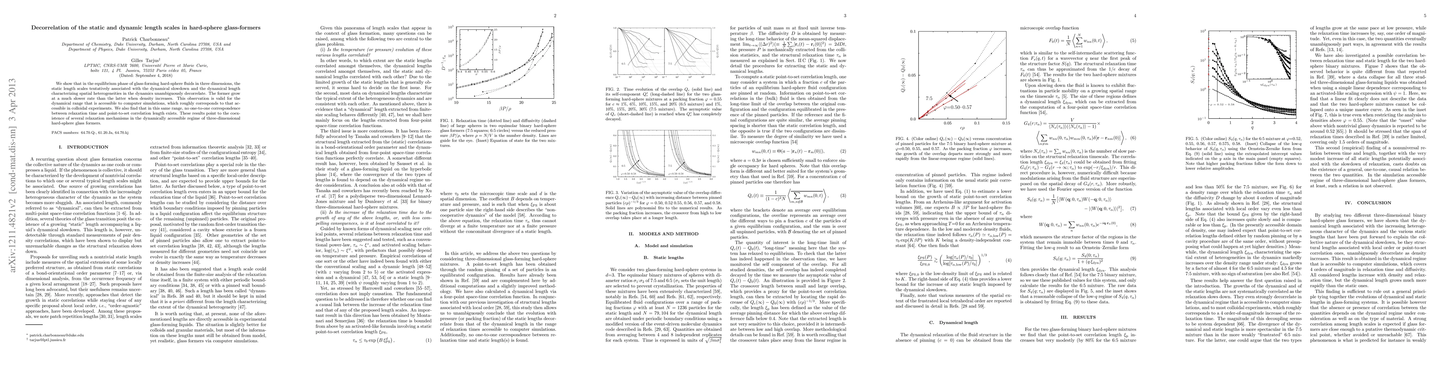 In three-dimensional hard-sphere glass-formers, static length scales related to dynamical slowdown and dynamic length scales of spatial heterogeneity decorrelate, with the former growing slower than the latter as density increases. This observation suggests multiple relaxation mechanisms in the accessible dynamical regime.